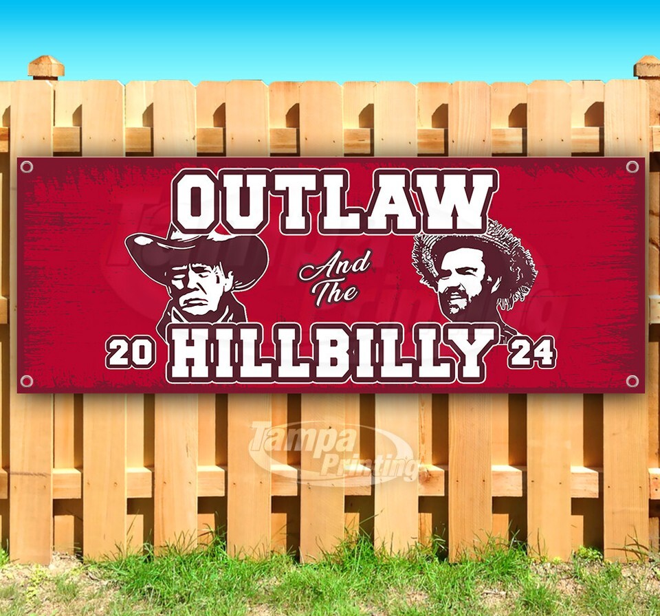 OUTLAW AND THE HILLBILLY TRUMP VANCE MAGA 2024 Banner Flag Sign Vinyl SB00189