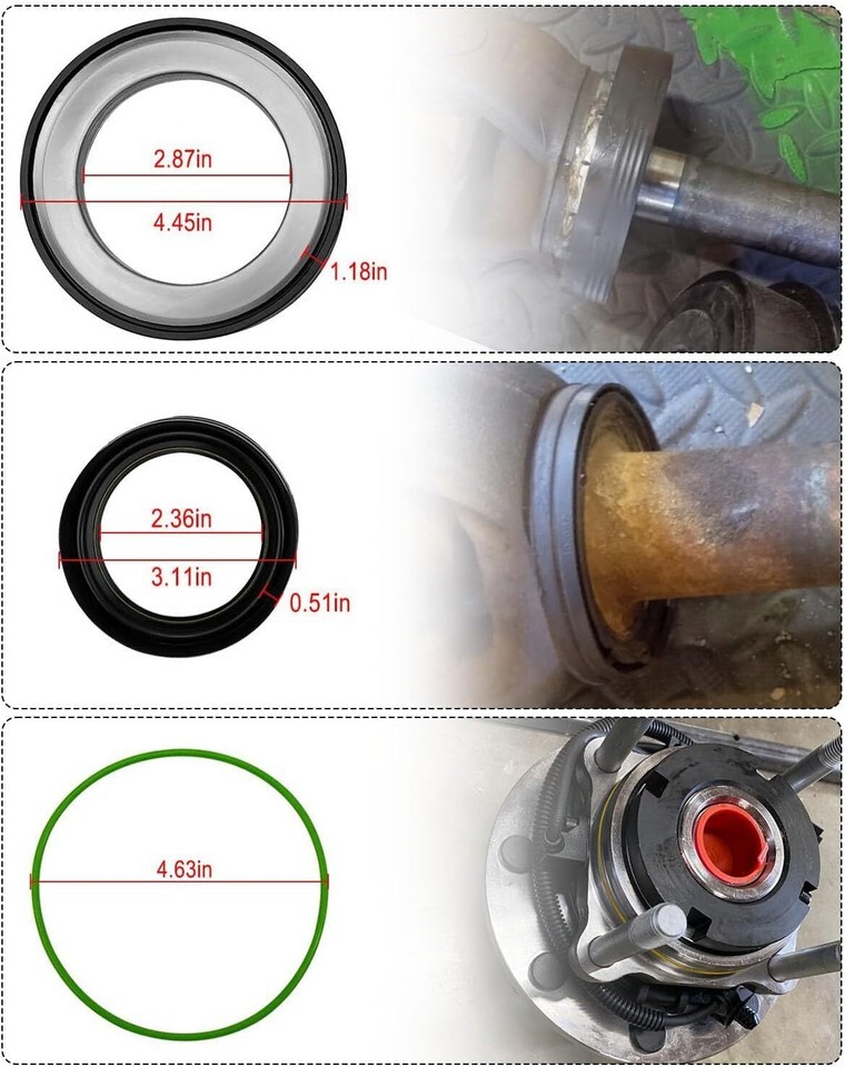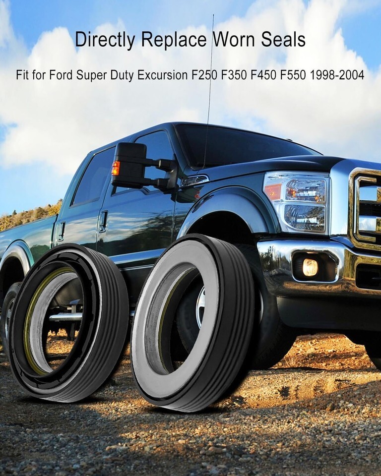 Compatible Models: Fit for FORD Super Duty F-250 F-350 F-450 F-550 Excursion 4X4 trucks with front leaf spring Dana 50 / 60 axles 1998-2005, fit for Ford Excursions F250 And F350 3/4 Ton And One Ton 4x4 Trucks, Inner steering knuckle oil seals replace 50491/228600/710493, Outer tube oil seals replace 50381/710413, Vacuum sealing O-rings replace 41784-2/F81Z-4A322-AA Reliable and Durable: Front axle knuckle tube seal kit made of high-quality, wear-resistant materials, resistant to high temperatures and corrosion, able to withstand long-term high-intensity use without loss of performance, and able to perform well under various working conditions, providing your vehicle with Durable and reliable steering performance Excellent Sealing: Precision sealing design prevents the leakage of lubricating oil or grease, maintains the lubrication conditions required for normal operation of the equipment, reduces friction and wear, improves the efficiency and performance of the equipment, and effectively prevents external pollutants such as dust, moisture and other impurities Get in, protect your bearings and other critical components Timely Replacement: Don?t hesitate to replace the front oil seal immediately when your vehicle develops problems such as oil leakage, increased noise, odor or smoke, reduced performance, or when replacement is recommended during a scheduled maintenance schedule Easy to Install: Just remove the damaged or old seal and install the new one in its original position, product includes: 2 x inner steering knuckle oil seals, 2 x vacuum sealing O-rings, 2 x outer tube oil seals