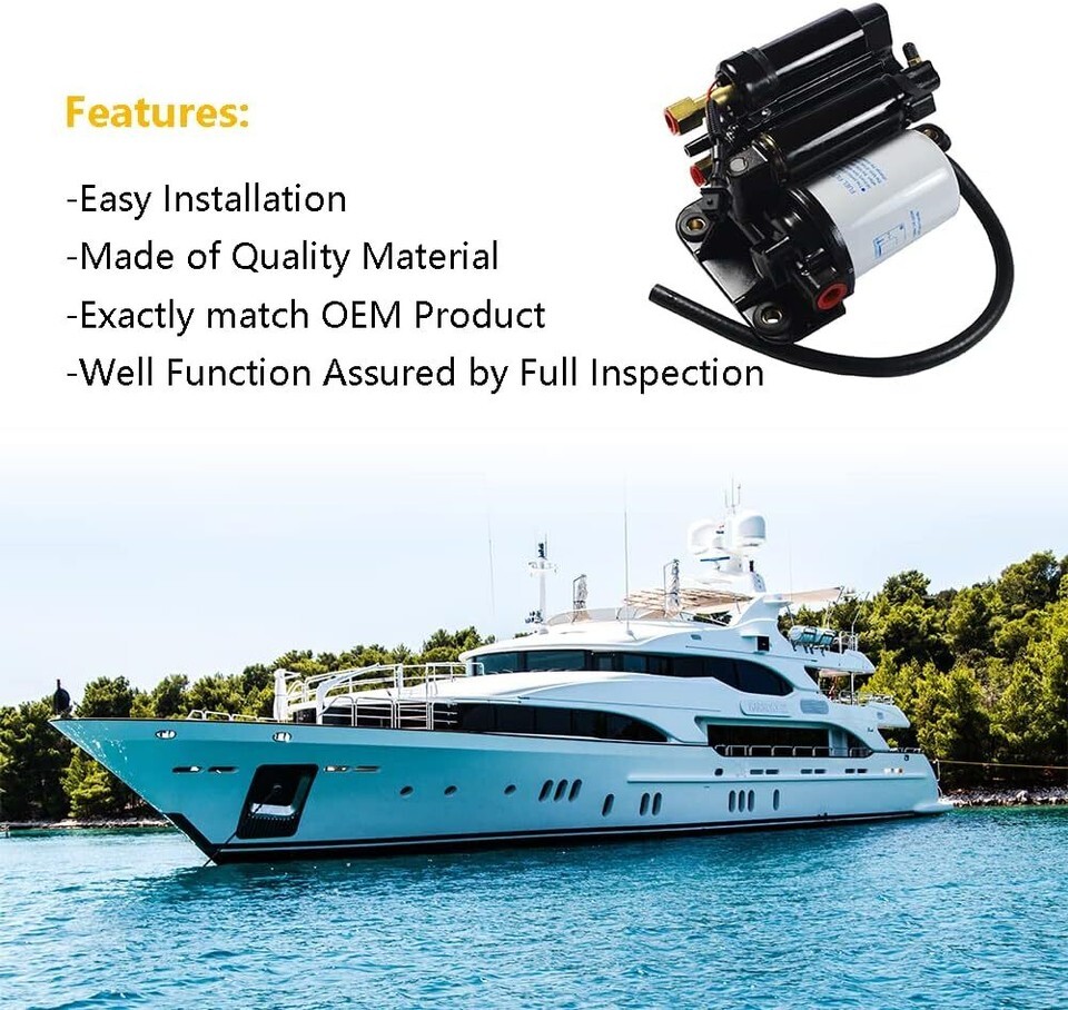 Marine fuel pumps are necessary for engine operation. This Electric Fuel Pump Assembly is actually made of two pumps along with a fuel reservoir. Gas is required for engine operation, and the fuel pump provides gas under pressure to ensure smooth and efficient operation of the engine.