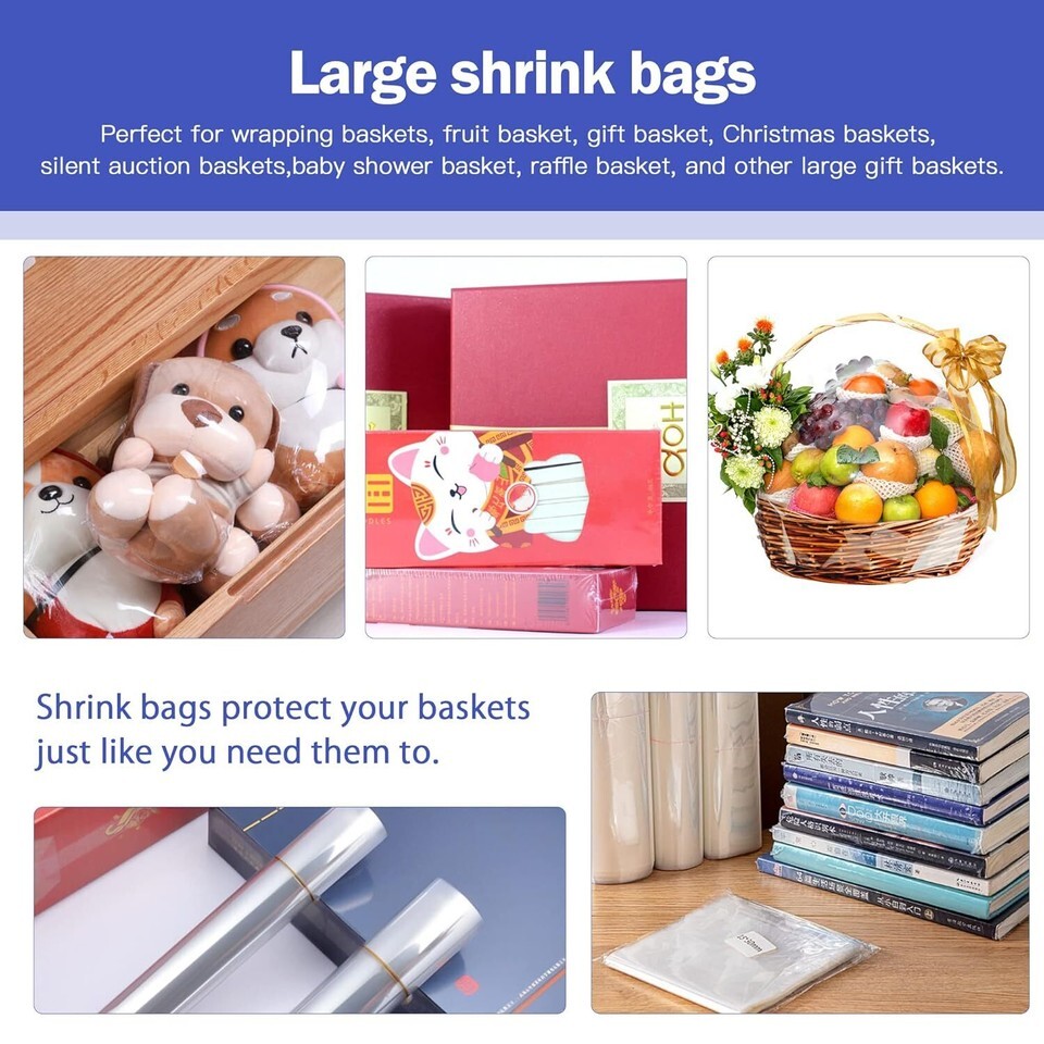 Package Included: 100PCS shrink wrap bags (baskets and heat gun are not included)