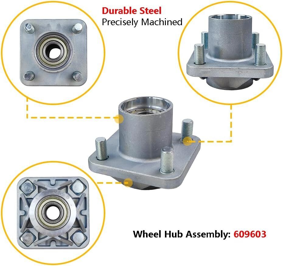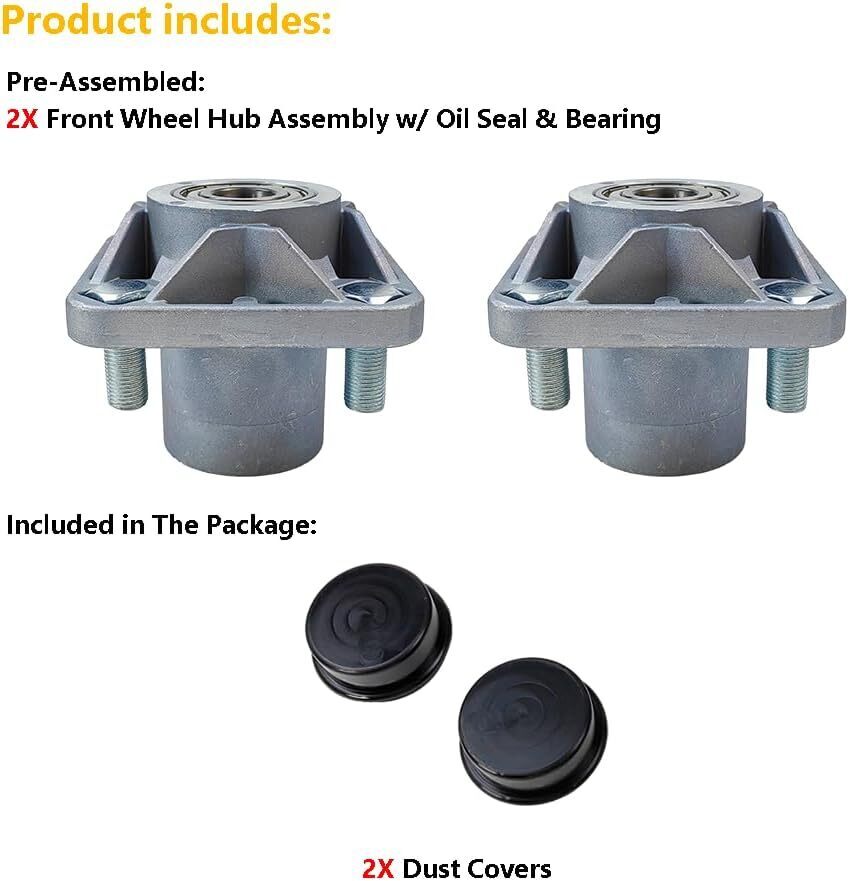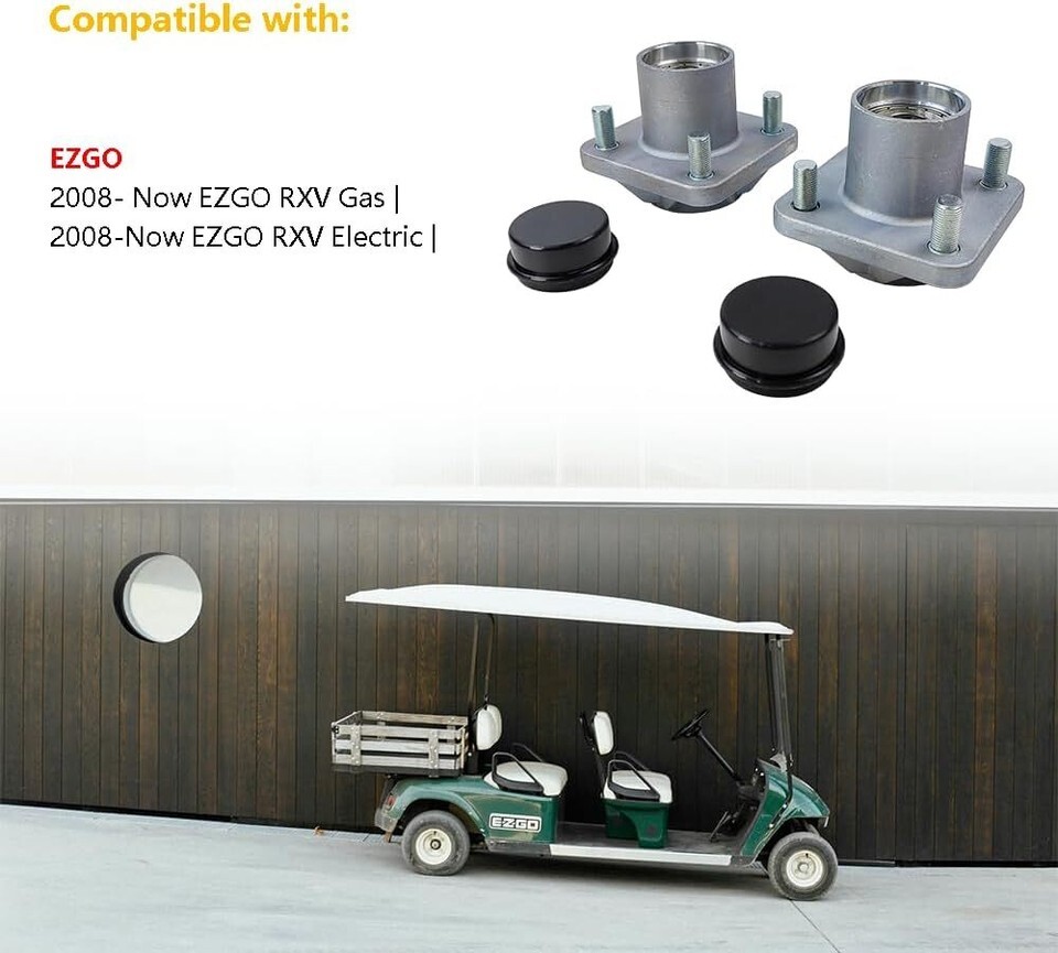 Package Includes: 2X Front Wheel Hub Assembly w/ Oil Seal Bearing | 2X Dust Covers | Compatible with: 2008-Up EZGO RXV Gas | 2008-Up EZGO RXV Electric | (for Golf Cart Front Wheel Hub Assembly) Product OE #: 609603 | 600001 | Bearing Model #: 6204 Metal Shielded Bearing | Warranty: For any reason, if you are not satisfied with your purchase, contact us directly. We offer 1-year warranty, 100% satisfaction guarantee.