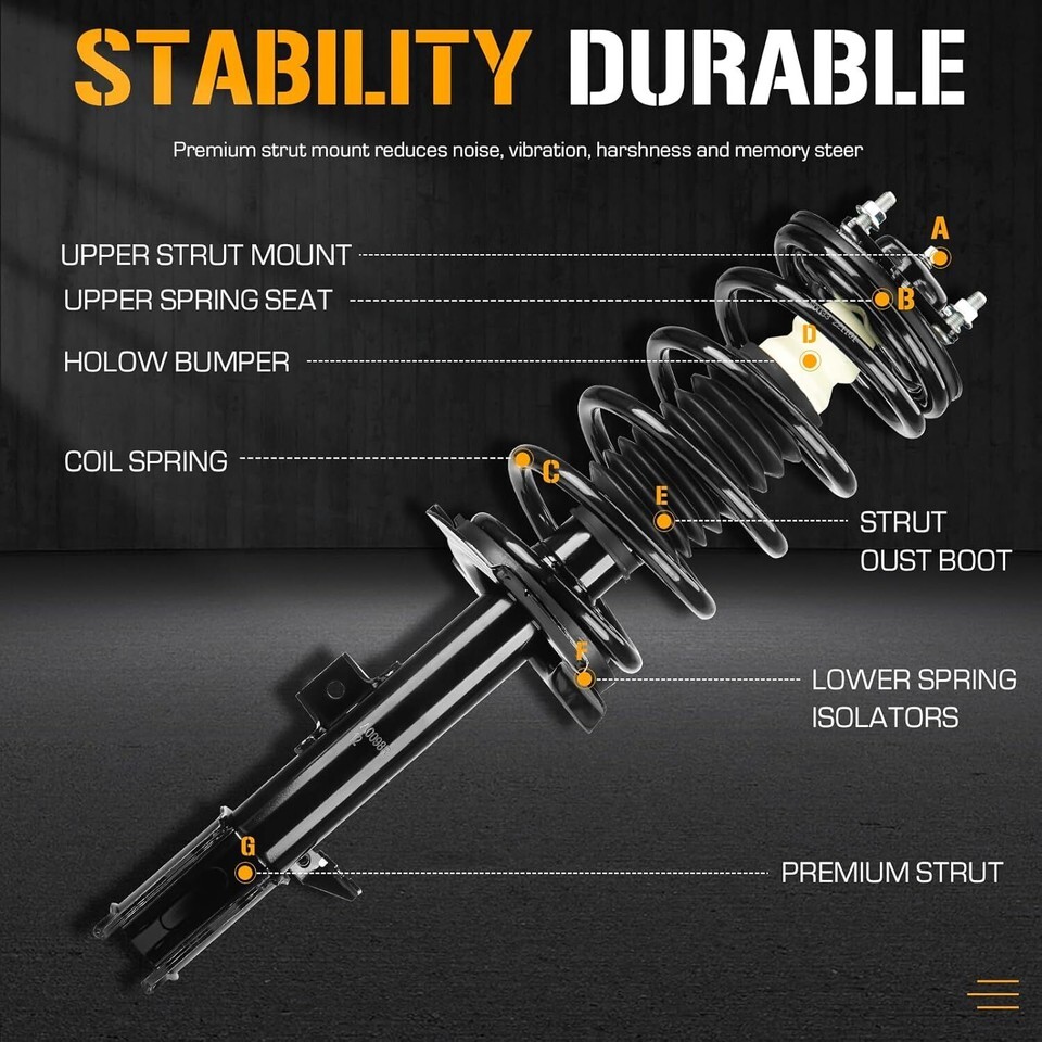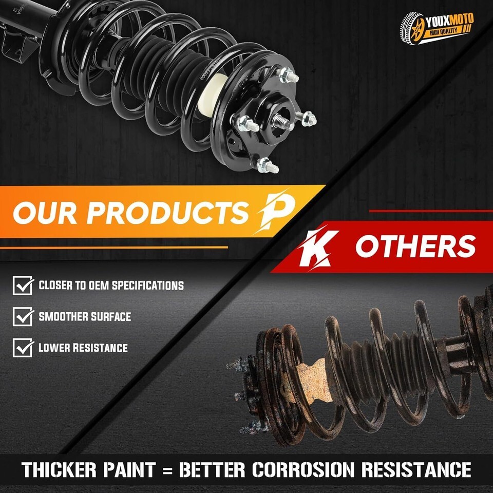 ?Compatibility with?Fits for Ford Escape 2001-2012, Fit for Mazda Tribute 2001-2006 2008-2011, Fit for Mercury Mariner 2005-2011 ?Includes ?2 Pcs (1 Pair) of Complete Strut Assembly which Equiped with Strut, Coil, Spring and Mounts. Replace Complete Strut Assembly : 171593, 171594 ?Improved Safety?The Shocks are designed to improve your car's safety by providing increased stability and control on the road. They provide a smooth and comfortable ride while enhancing your car's handling and control on the road ?Durable Construction?Constructed with high-quality materials to deliver long-lasting durability and reliability. Their strong build ensures that they withstand the toughest driving conditions and last for many miles to come. ?Easy Installation?These Shocks are easy to install and require no special tools or skills. The installation process quick and straightforward.