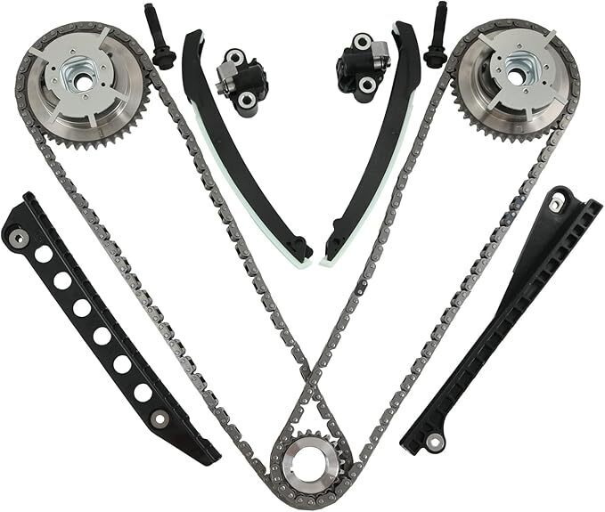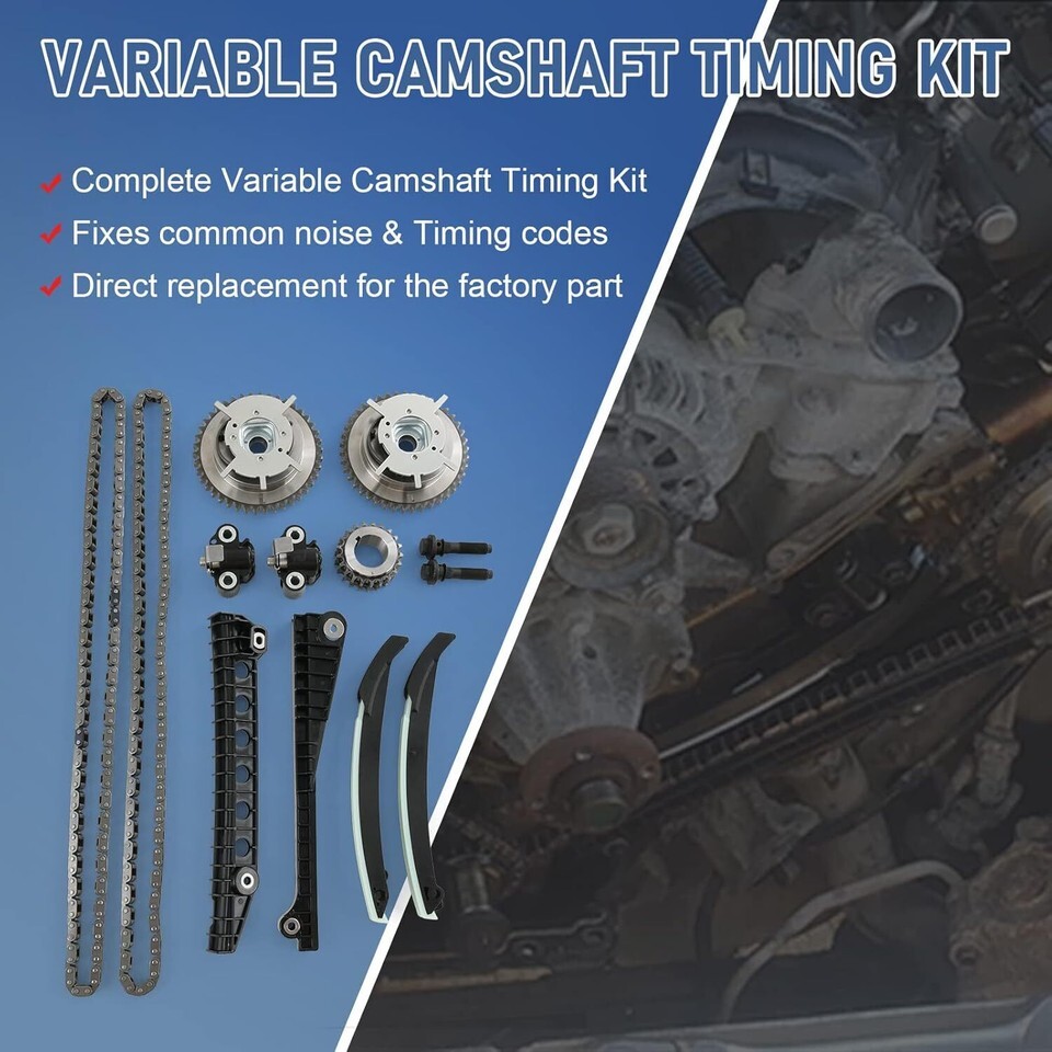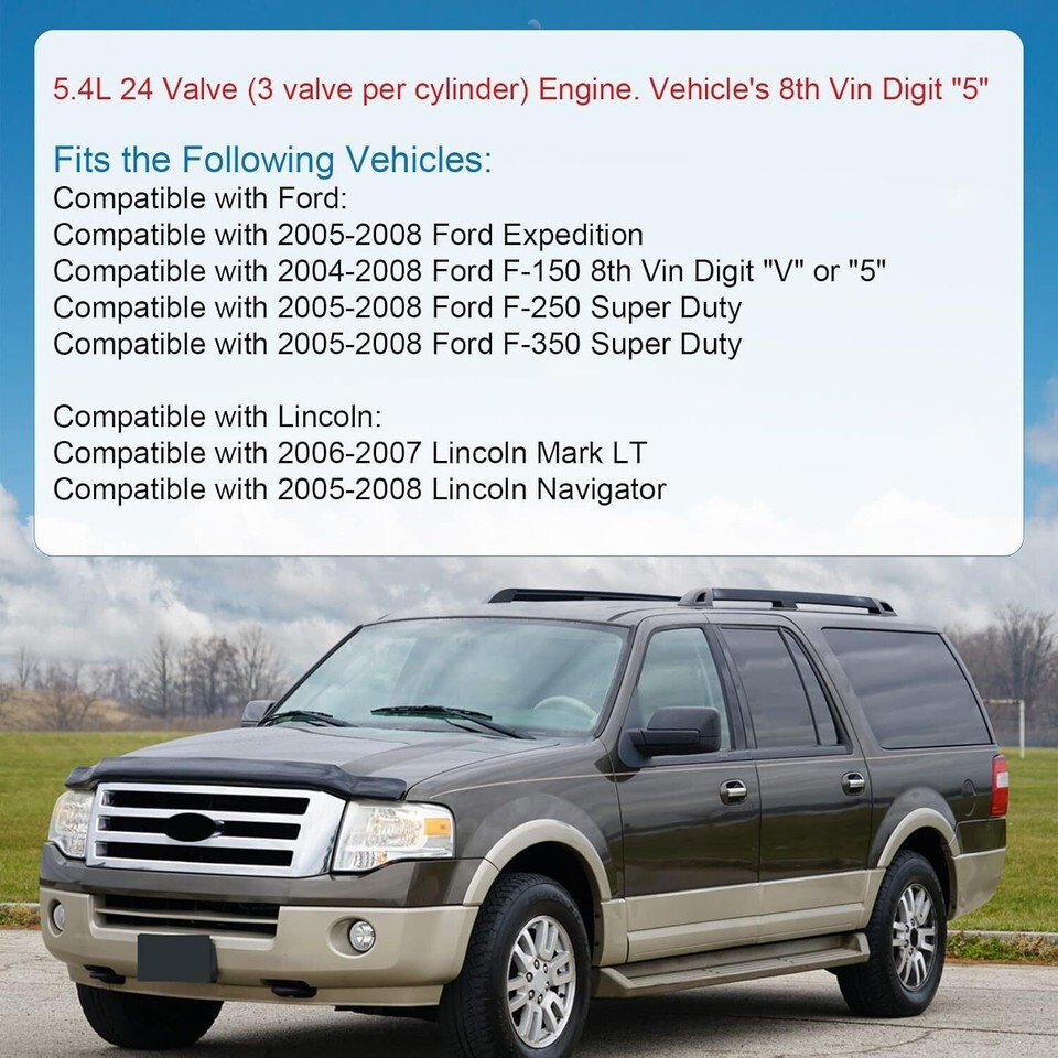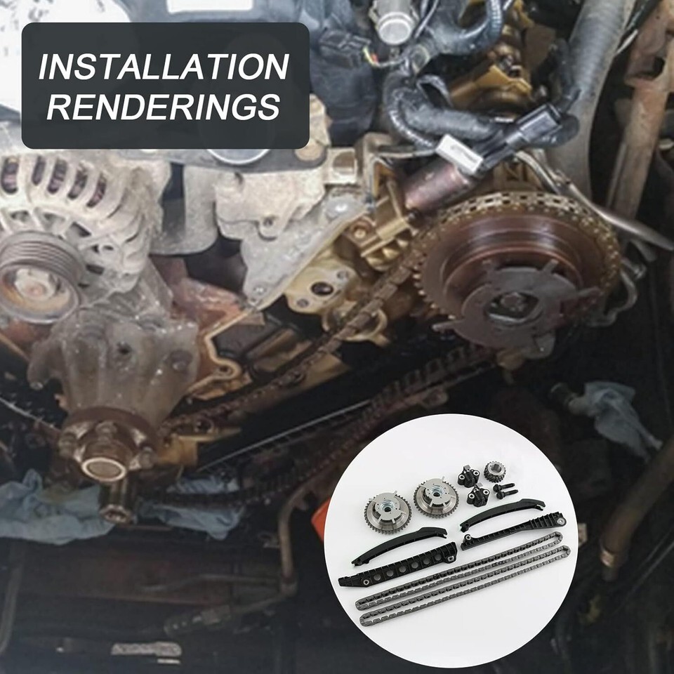 [FITMENT] Compatible with 2005-2008 Ford Expedition, compatible with 2004-2008 Ford F150 8th Vin Digit "V" or "5", compatible with 2005-2008 Ford F250 Super Duty, compatible with 2005-2008 Ford F350 Super Duty, compatible with 2006-2007 Lincoln Mark LT, compatible with 2005-2008 Lincoln Navigator. [REPLACE PART NUMBER] 5L3Z 6268-AT, XL1Z 6L266-AAP, 1L3Z 6L266-AAL, XL3Z 6306-AA2, 3R2Z 6A257-DA2, 3L3Z 6279-DAP, F85Z 6K255-AAT, 4L3Z 6M256-AAT, F85Z 6M274-AAT, 2L1Z 6K297-AA. [FUNCTION] The camshaft phasers, tensioners and the guides may fail over time, if you do not align the camshafts correctly, your engine may suffer from serious damage as a result. So professional installation maybe needed to avoided serious mechanical damage on your engine. [DIRECT REPLACEMENT] While this is not a genuine OEM part, it is a direct replacement for the factory replacement Variable Camshaft Timing Kit. It is precision-engineered to match the fit and function of the original VCT timing kit. [DURABLE CONSTRUCTION] Long life-span m atters, that is why our variable camshaft timing kit is made from quality materials to ensure a long service life and has undergone on-vehicle testing to ensure proper fit and performance.