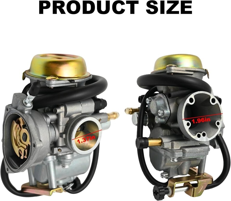 [Replace Part Number]: 13200-05G01 [Fitment]: Replacement for Suzuki LT-F250 Ozark 2002-2009, LT-F250F Ozark 2002-2003, Quad Sport LTZ250 2004-2009. [Part Parameters]: Inner Diameter (intake side): 28mm/ Outer Diameter (intake side): 37mm, Inner Diameter (air filter side): 48mm/ Outer Diameter(air filter side): 52mm [Improve performance]: Carburetor can solve the problems of internal rust, component damage, lack of power, insufficient fuel combustion, etc. It can be adapted to different environmental conditions and driving needs, provide the right fuel mixing ratio, and improve combustion efficiency and engine performance. [Easy Installation]: 13200-05G01 carburetor can fits your machine directly, requiring no further adjustment.