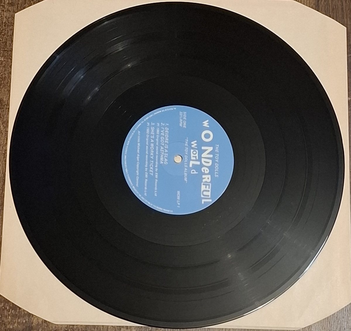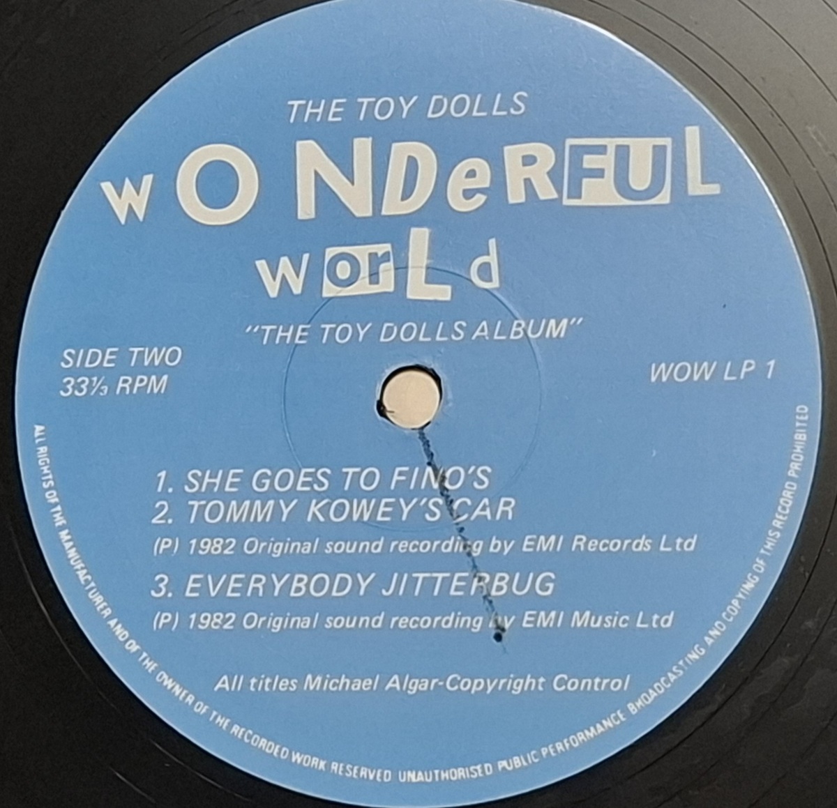 Original UK pressing of Wonderful World by The Toy Dolls, released in 1982 on WOW Records (WOW LP 1). Early indie punk LP that rocks hard and remains a cult favorite among UK punk collectors.