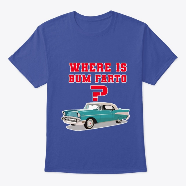 "Where is Bum Farto?" T-shirts, referencing the 1970s Key West fire chief and drug dealer who disappeared, are primarily sold as custom, novelty, or local souvenir merchandise. They are often found online through custom apparel sites, and at local Key West shops that specialize in Florida history or, ironically, in "uniquely Florida" fashion.