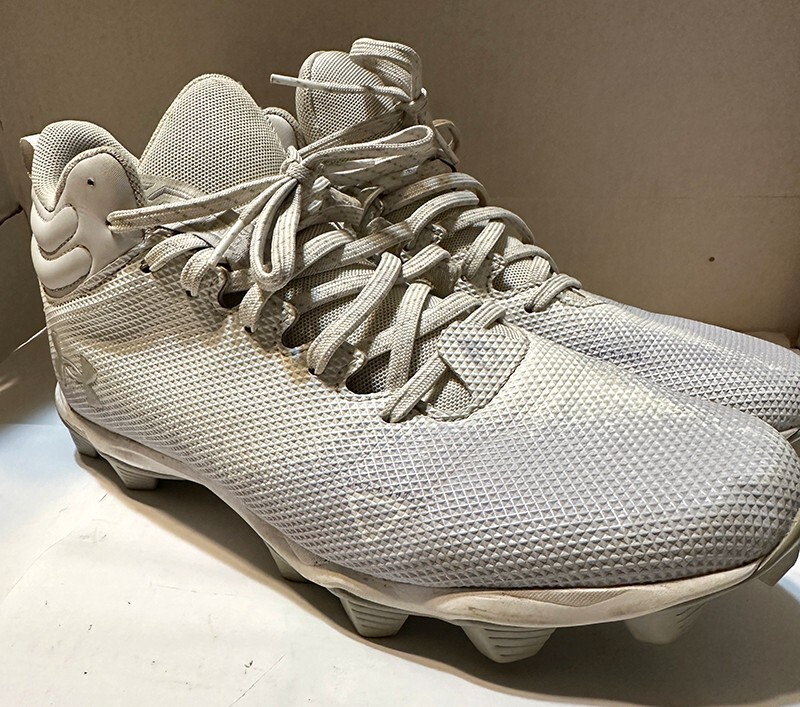 Under Armour Locked Down Men White Silver Football/Baseball Cleats Sz 8.5