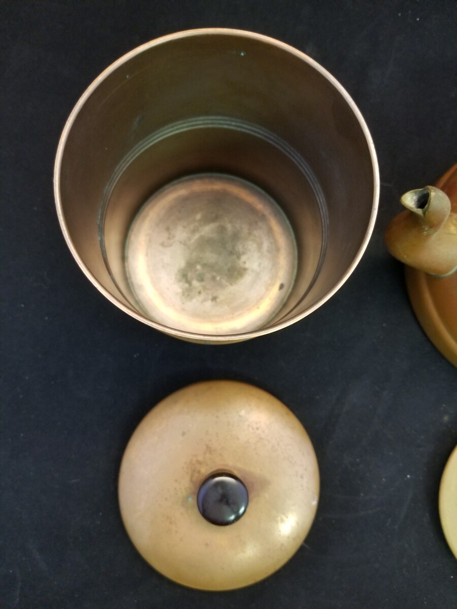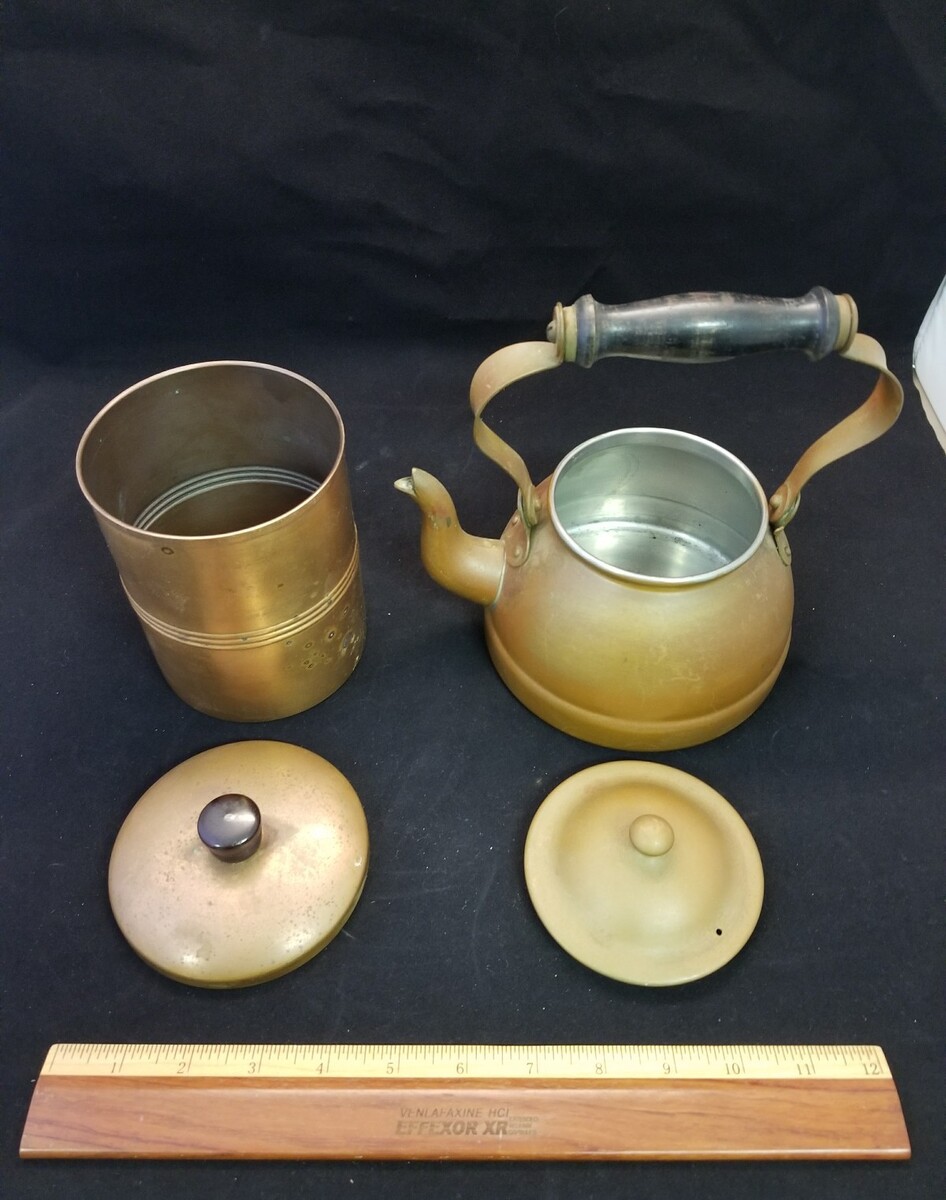 Copper Clad Colonial Style Tea Kettle & Solid Copper Storage Container