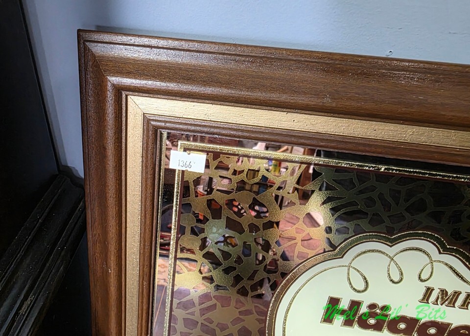 Upgrade your man cave with this vintage Haagen-Dazs Cream Liqueur bar mirror sign with brown wood frame with brown/gold background shapes with middle cream/brown