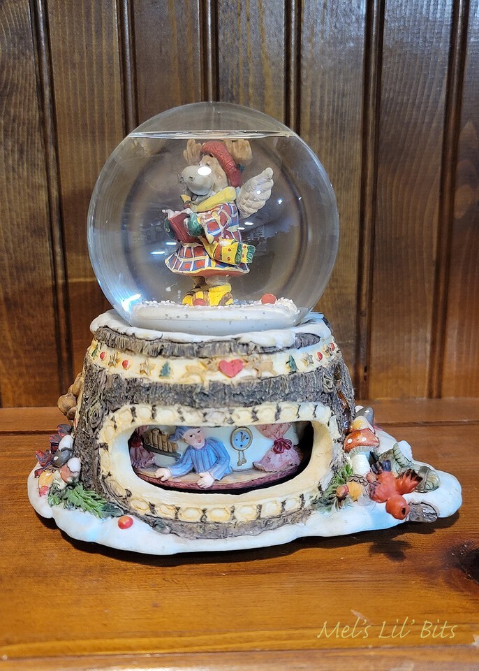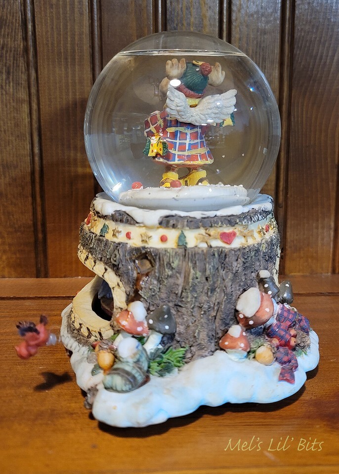 Angel Moose Maple Tree Christmas Holiday Musical Animated Snow Globe