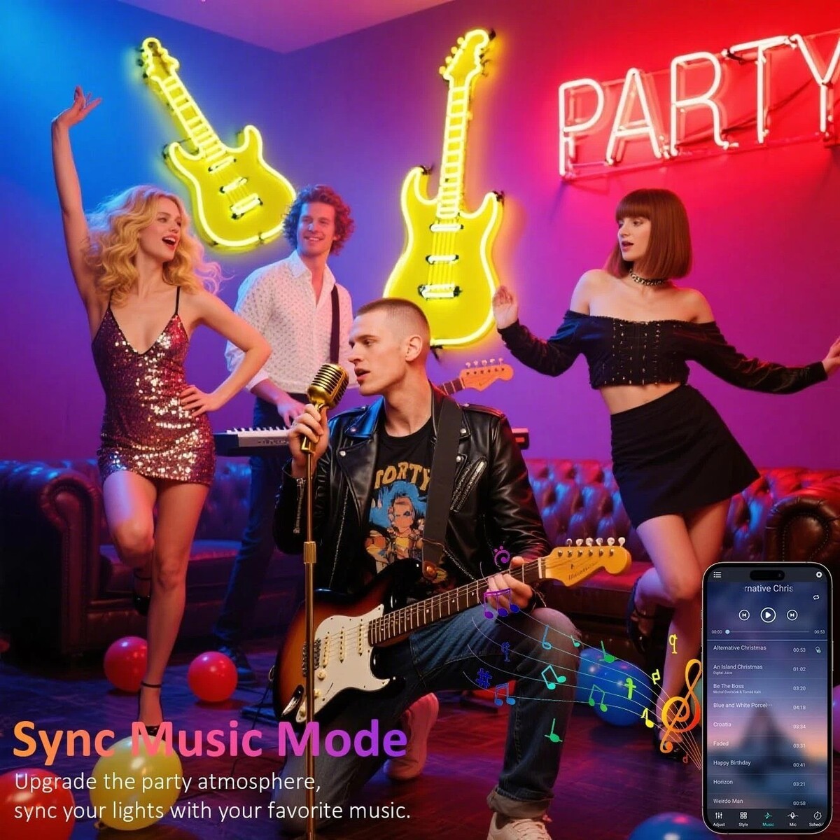?Music Sync Mode and Timing Function? The RGB Lights have music synchronization function, adding fun to your gatherings with friends and family. You can also automatically set the on/off time, saving your time and energy, and extending the lifespan of this outdoor light