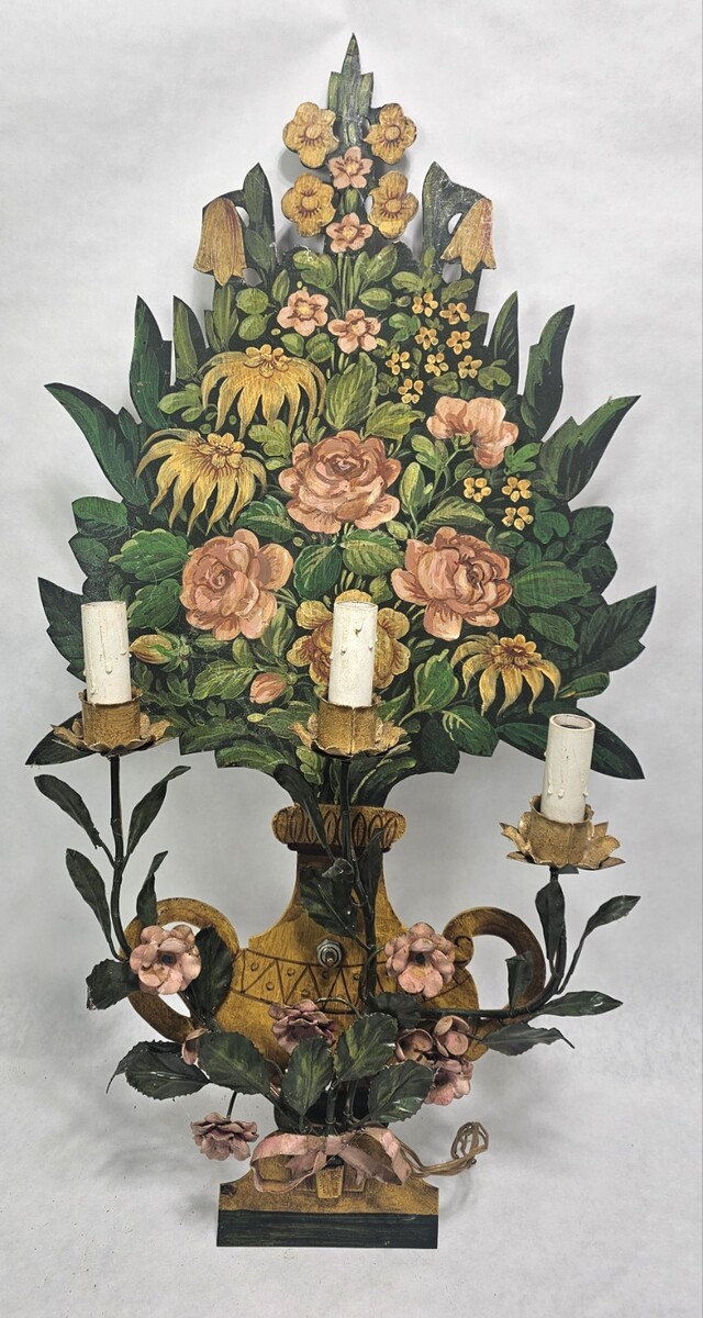 Vintage Pair Italian Tole 3 Candle Electric and similar items