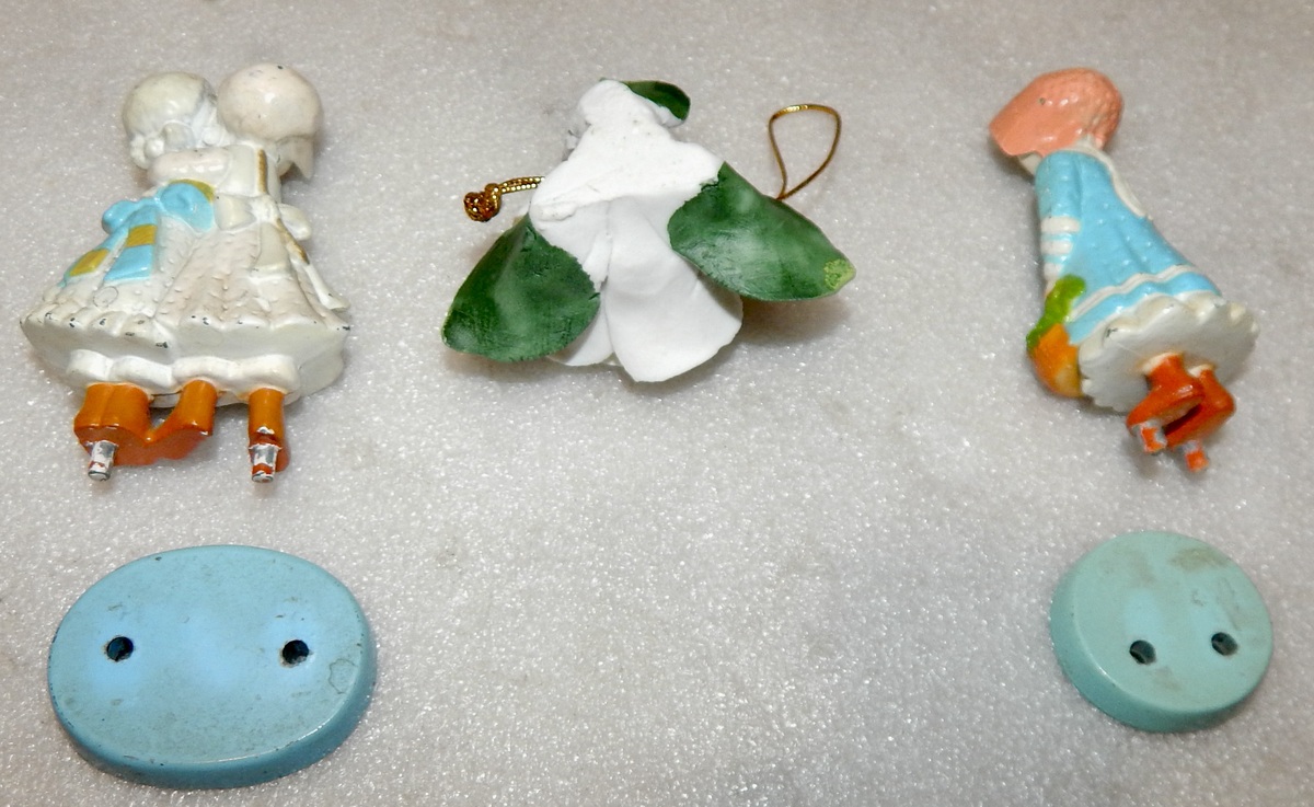 Vintage Vanity Fair Holly Hobby figures Metal Hong Kong + Flower 1978 11T.