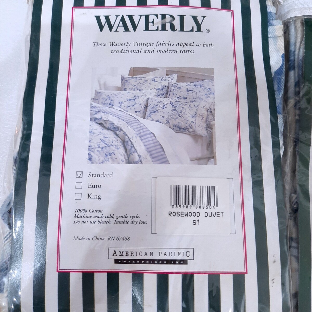 NEW Waverly Standard pillow Sham SET 2 Rosewood Duvet blue cabbage rose floral