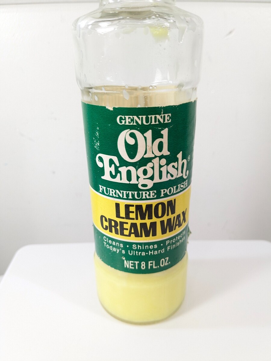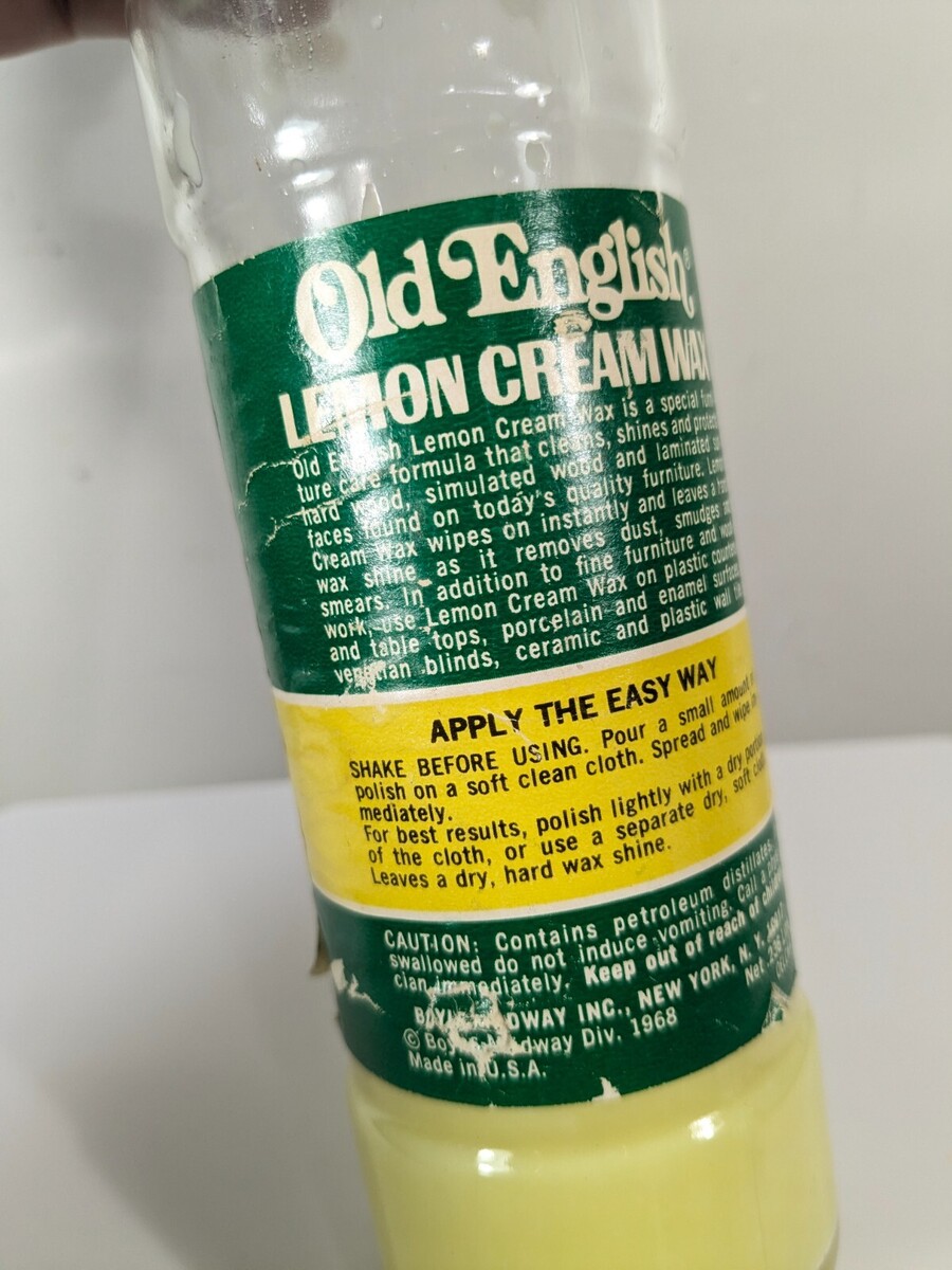 Vintage OLD ENGLISH Lemon Cream Wax Furniture Care Polish glass bottle 1968