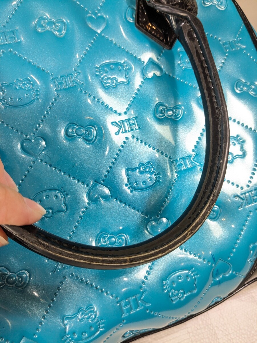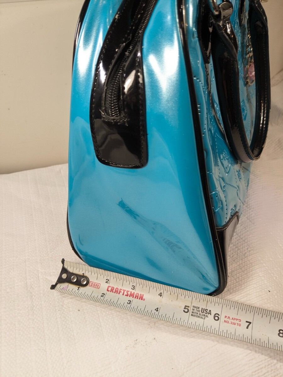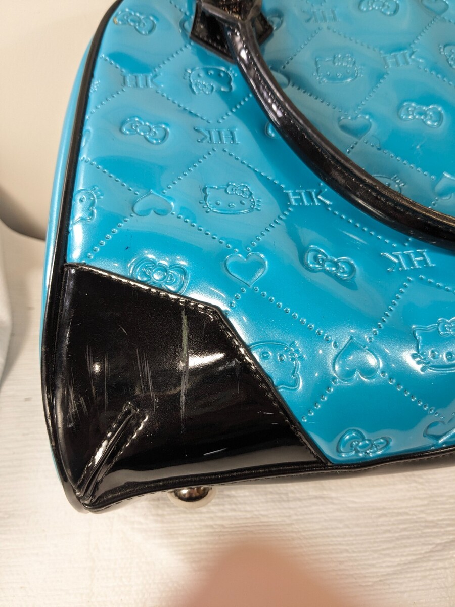 Hello Kitty Sanrio Loungefly Bowler Bag Purse Embossed Patent Leather Teal blue