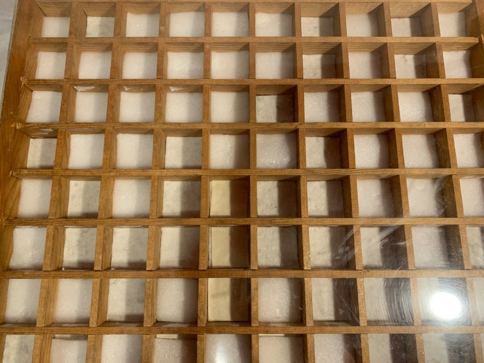 SOLID WOODEN SECTIONED ORGANIZED PLEXIGLAS PULL DOWN DOOR DISPLAY CASE