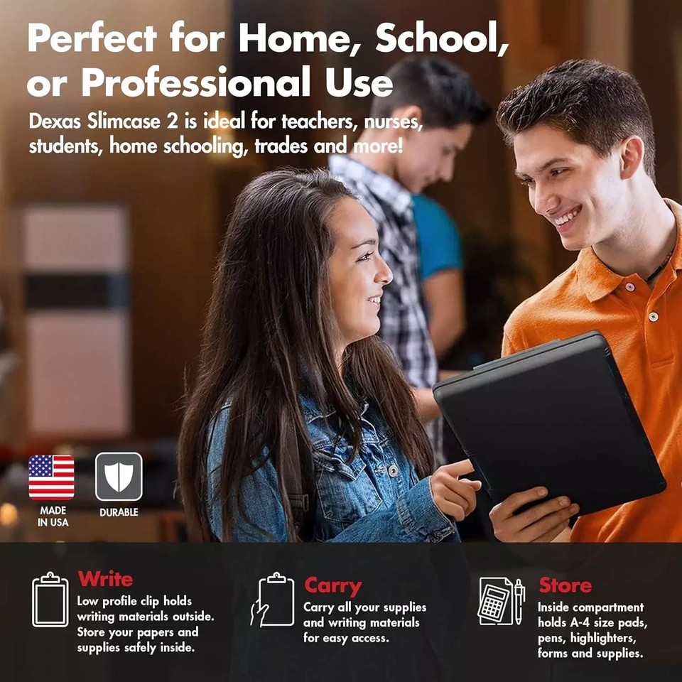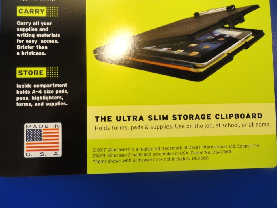 DURABLE, MADE IN USA: Crafted from high-quality materials, this clipboard organizer is built to withstand daily use while maintaining its stylish appearance. This plastic clipboard with storage is break-resistant. We are proud to design and manufacture Slim Cases in our Texas facility.