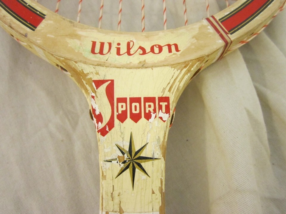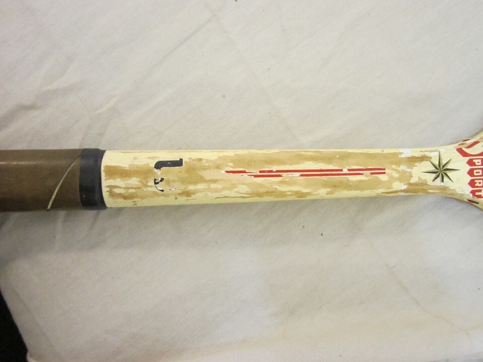 ANTIQUE VINTAGE 1950s RED WHITE WILSON SPORT MODEL WOODEN TENNIS RACKET 130050
