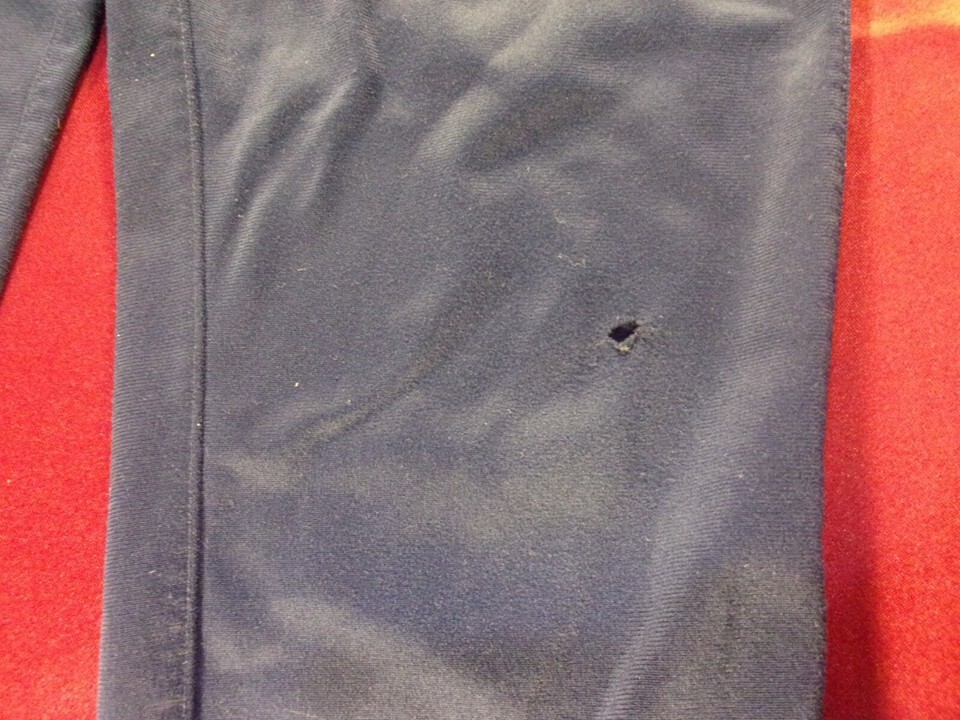 DEFECTS: SMALL HOLE IN LEFT KNEE