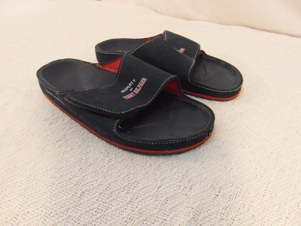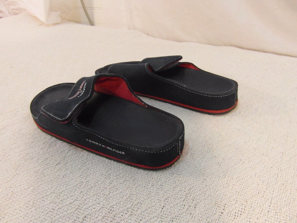 Youth Boy's Tommy Hilfiger Royal Blue Red 5M Slip On Hook / Loop Sandals 33195