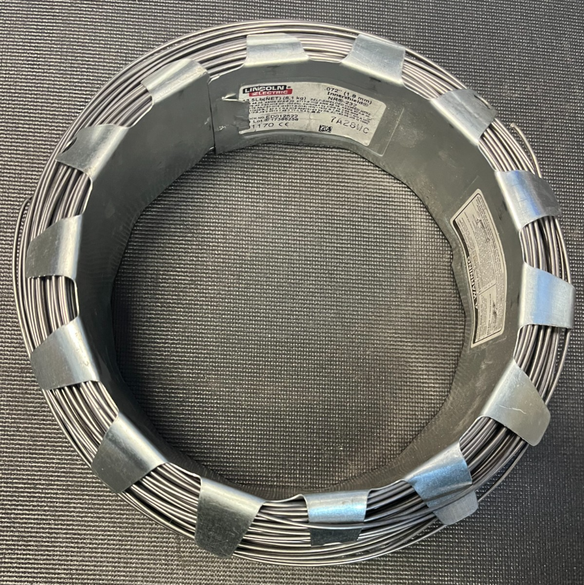 Lincoln Electric Innershield NR-232 .072" (1.8mm) self-shielded flux-cored welding wire, open box surplus. Premium NR-232 formulation for all-position welding of heavy structural steel?excellent for field repairs, fabrication shops, and pipeline work.