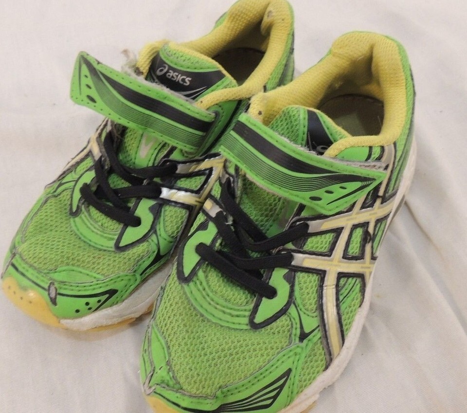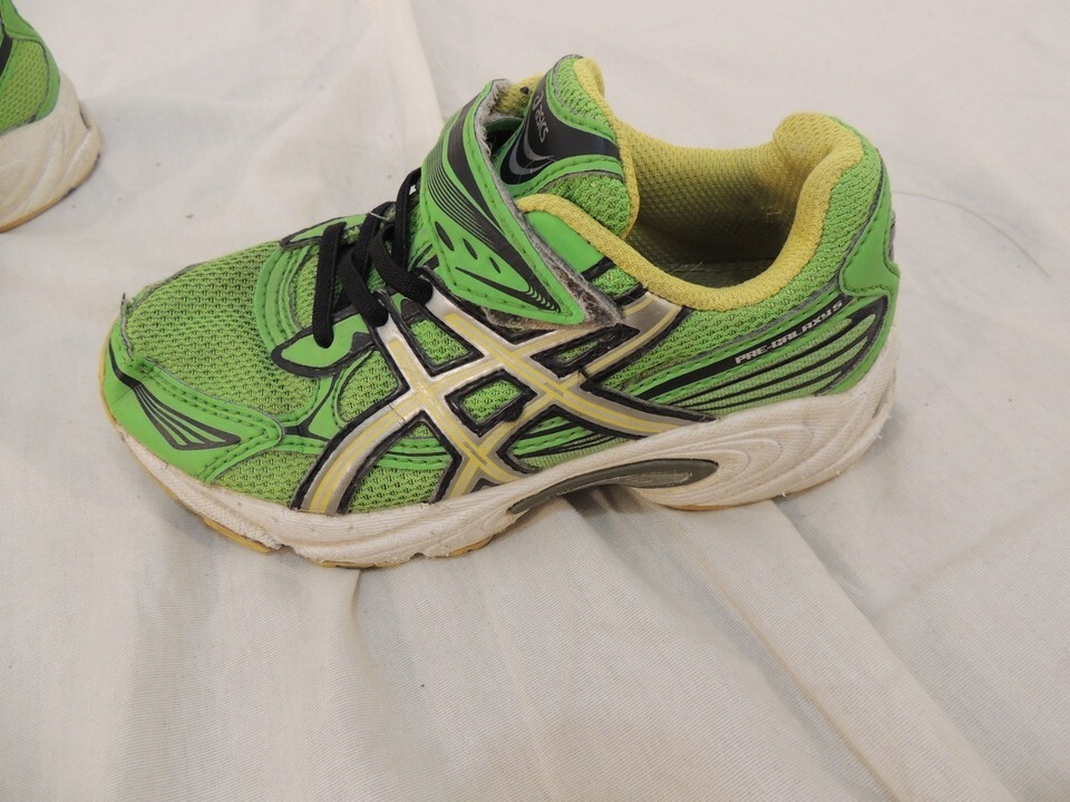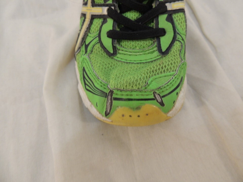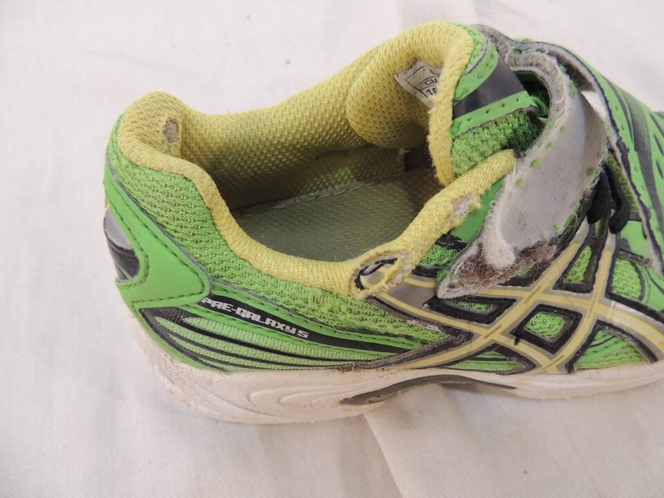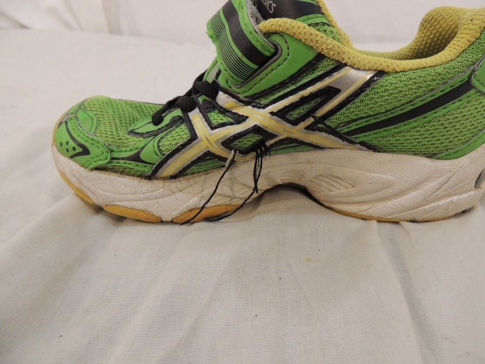 BOYS szK-12 ASICS PRE-GALAXY SHOES GREEN & YELLOW C204Q Defects STRAP/LACES