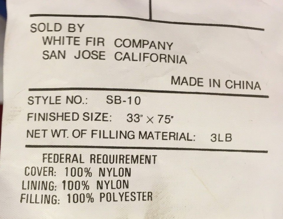 NEW STANDARD CAMPING HUNTING SLEEPING BAG WHITE FIR CO FUJI SB-10 33" X 75" BLUE