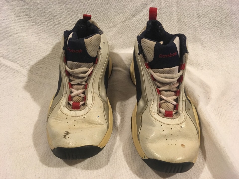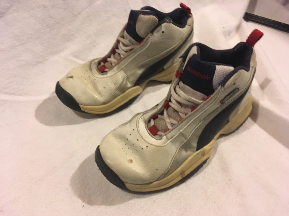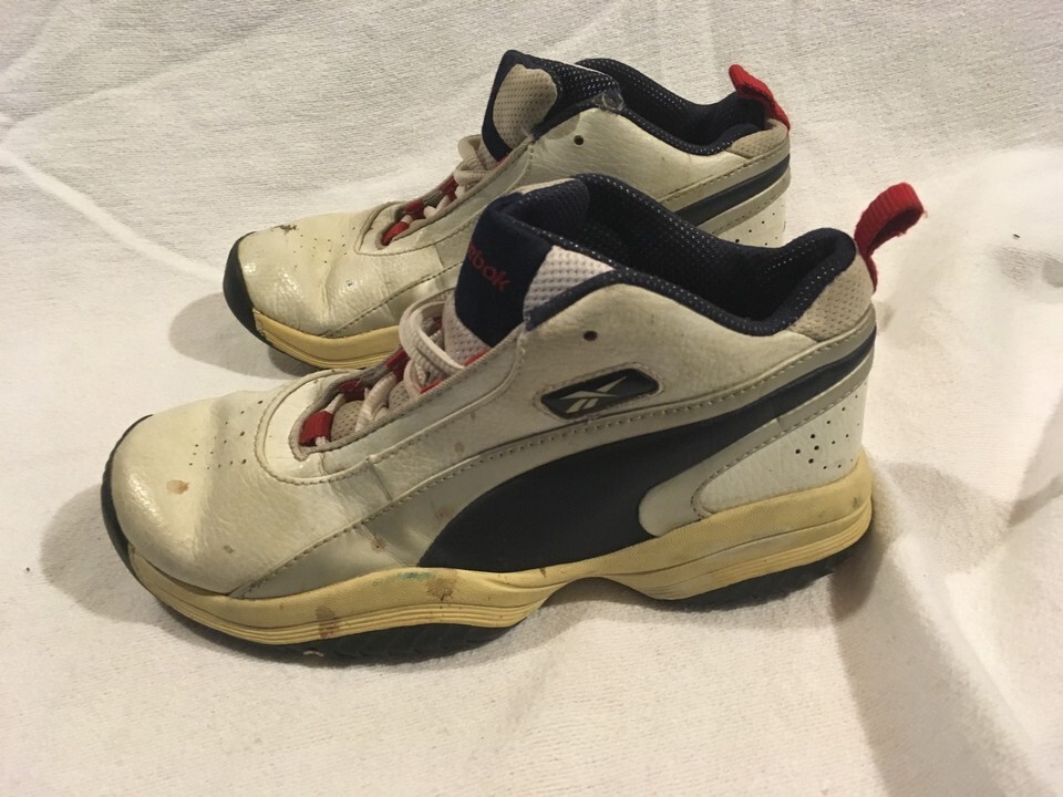 Childrens Reebok White Blue Red Lace Up 3 Athletic Basketball Shoes Sneakers