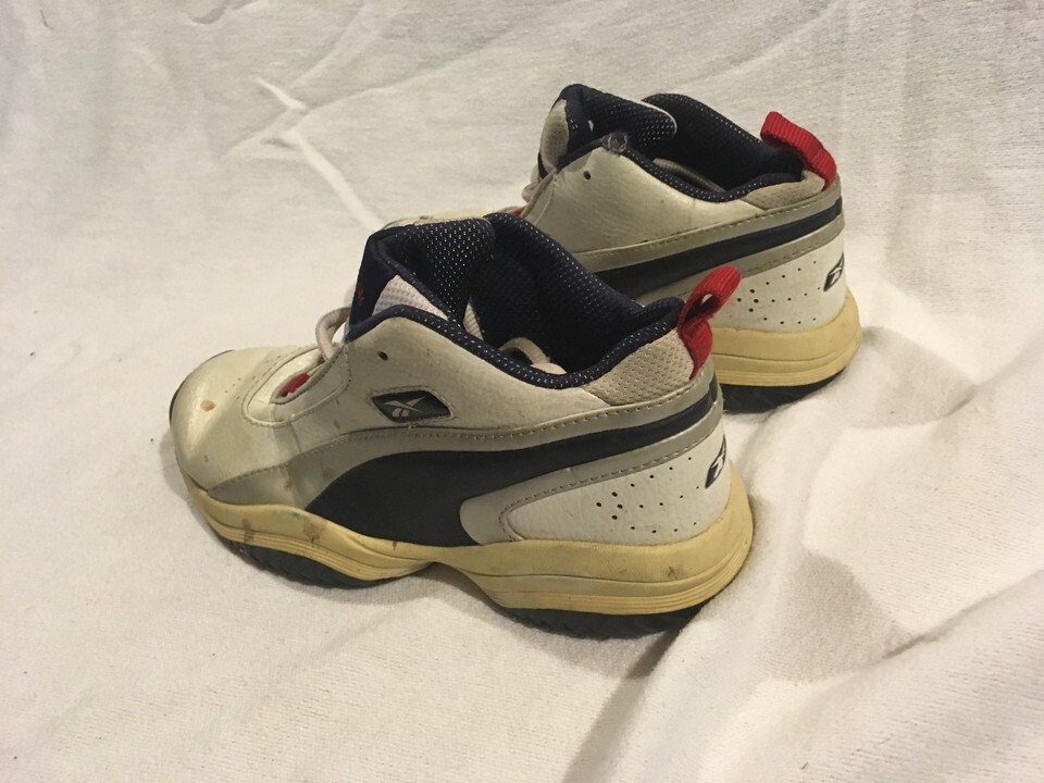 ITEM : Childrens Reebok White Blue Red Lace Up 3 Athletic Basketball Shoes Sneakers