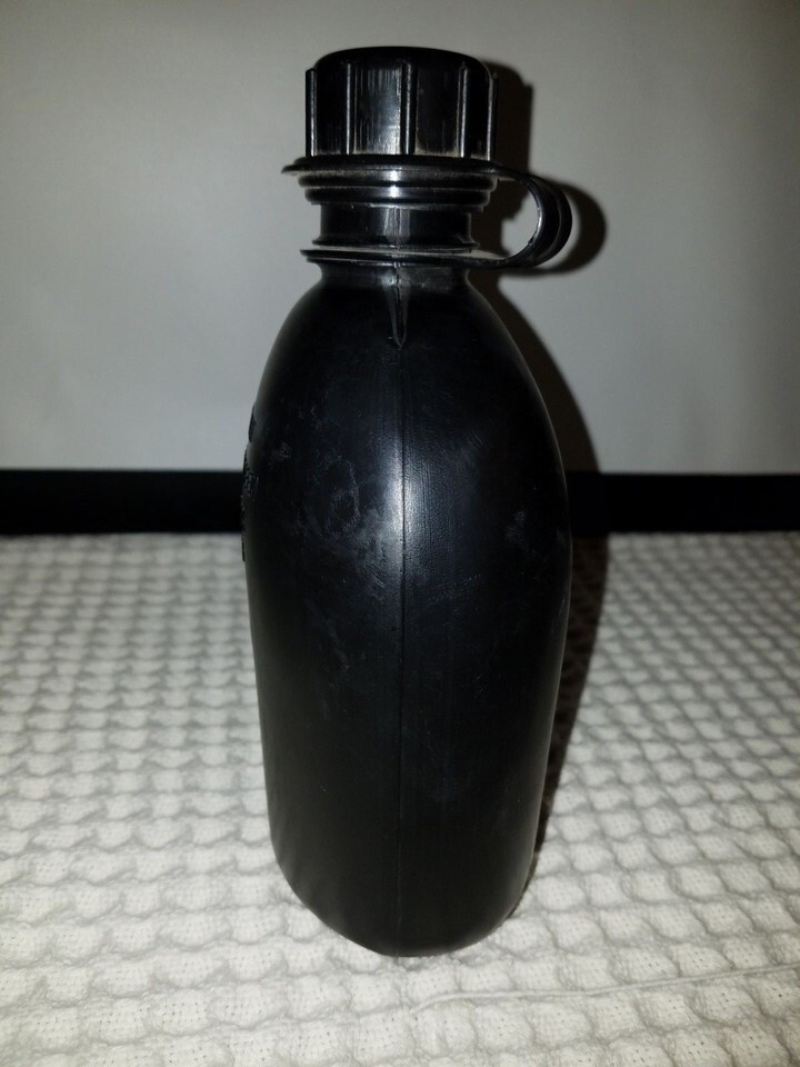 VINTAGE US ARMY 1976 MILITARY BLACK HARD PLASTIC WATER CANTEEN IN GOOD CONDITION