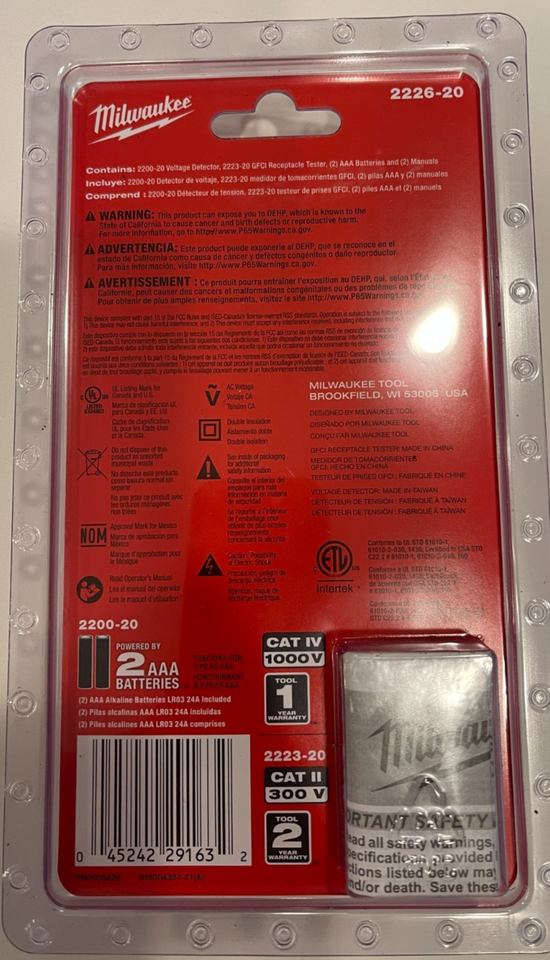 Milwaukee GFCI Receptacle Tester & Voltage Detector 2226-20 - New & Sealed