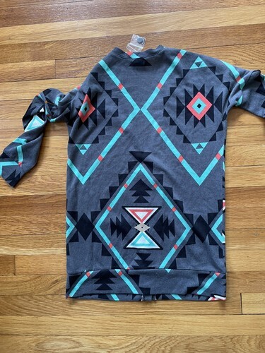 Nollie Women?s V-neck Cardigan Size Small Geomtric Print Gray Southwest Aztec.