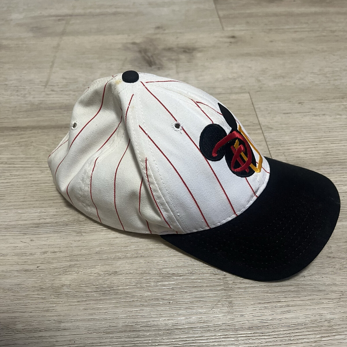 Disney University Hat White Red Pinstripes Snapback Adjustable Vtg 90s Mickey