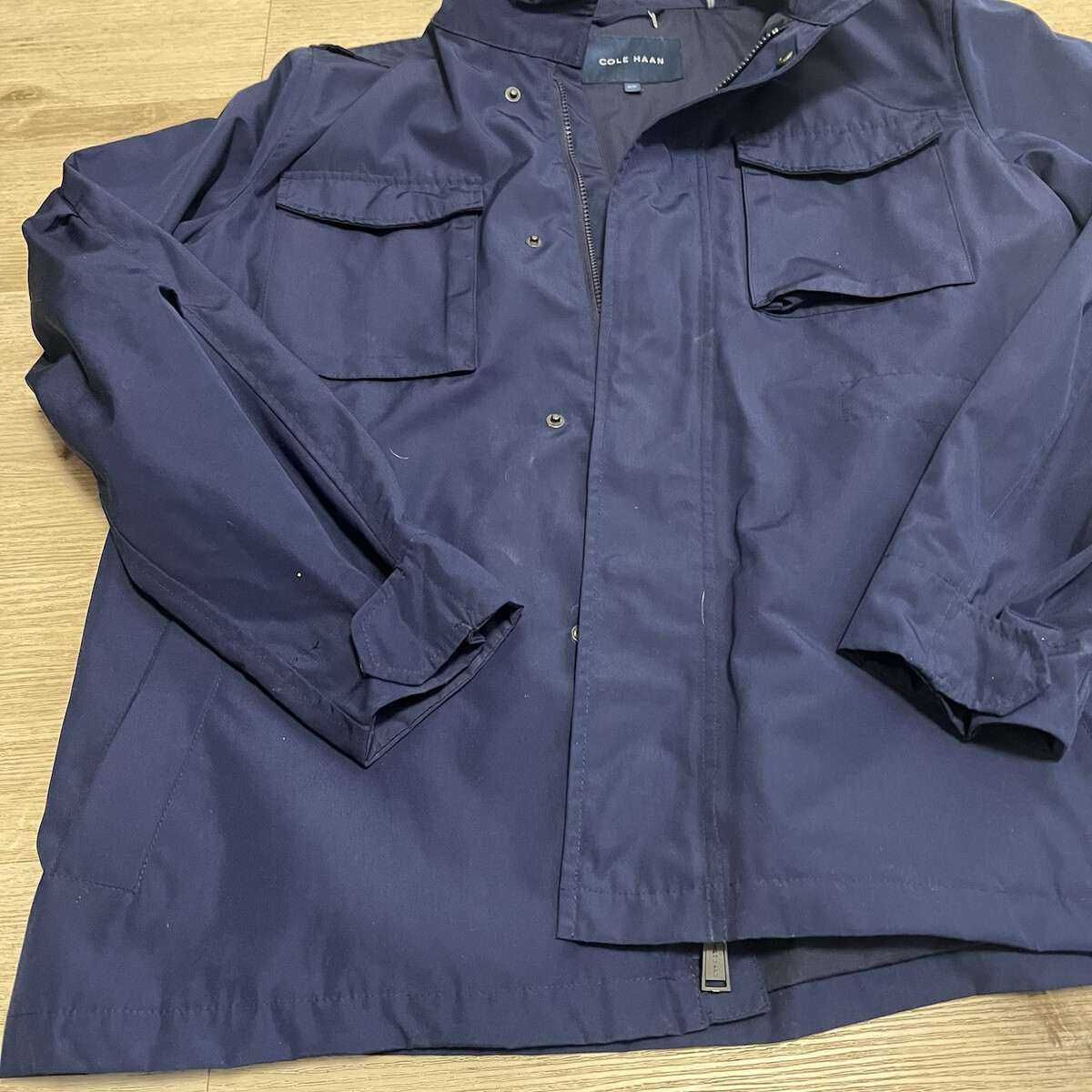 Cole Haan Mens Field Parka Jacket Water Resistant Blue Full Zip Size Medium