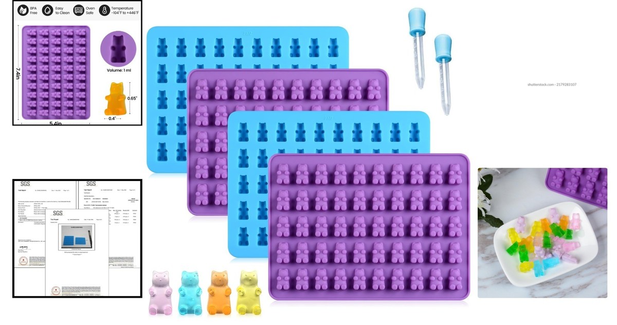 4-Piece Mini Bear Gummy Mold Set - BPA-Free and similar items