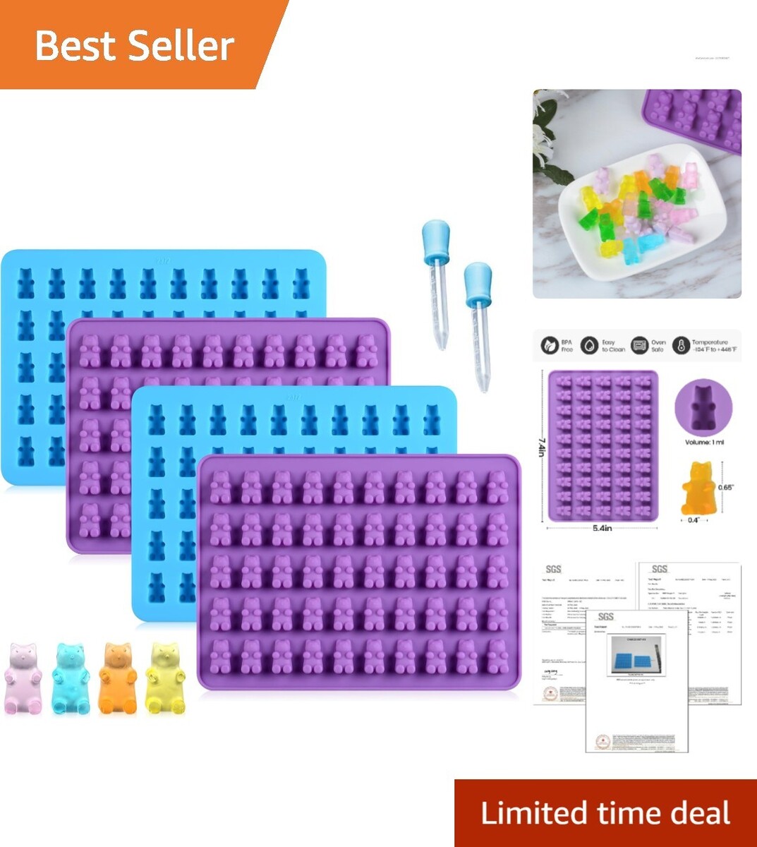 4-Piece Mini Bear Gummy Mold Set - BPA-Free Silicone with 2 Practical Droppers