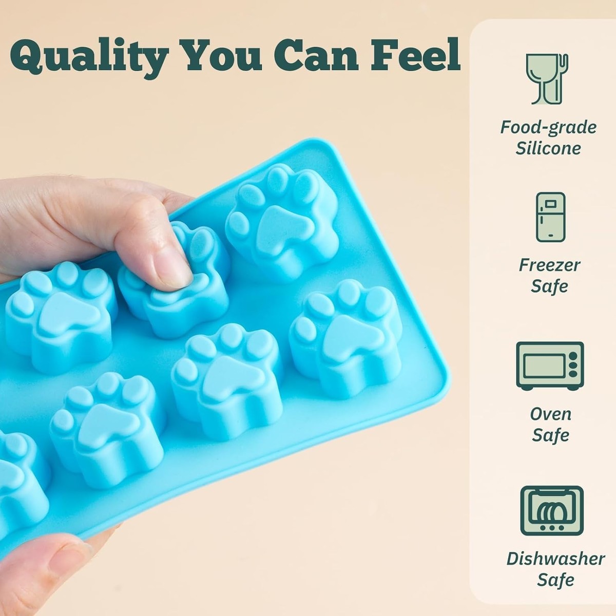 Includes 4 Non-Stick Silicone Molds: 2 Paw and 2 Bone designs for delightful treats.