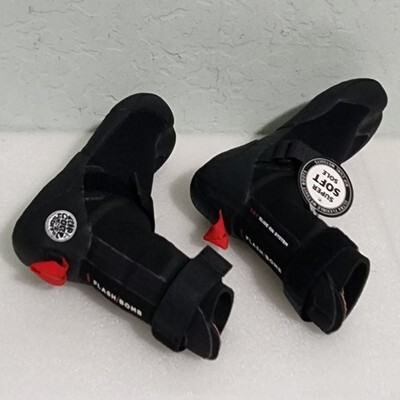 "5mm Rip Curl FLASH BOMB Hidden Split Toe Boots Rip Curl gives you some of the warmest and driest boots on the market by utilizing their revolutionary Flash Lining. The Flash Lining gives the wearer ultimate warmth while drying quickly. The seams are sealed with Rip Curl's stretchy and durable E4 taping. The sole is super-soft for feel and grip while the velcro straps around the ankle and over the top of the foot provide stability and a snug fit. A heel pull aids in entry of the boot.