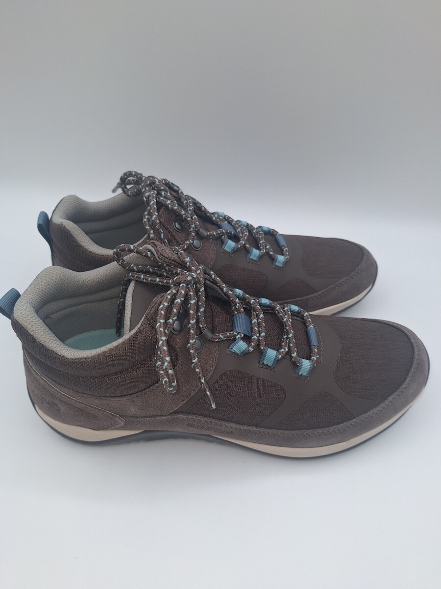 Head out and explore in this water-repellent trail-ready hiking boot with all-over cushioning, shock absorption, and a treaded sole. BEST FOR: Light outdoor hiking. PERFORMANCE TECH: RE-ZORB LITE for lightweight impact protection + shock absorption. MADE FOR WOMEN FIT: Designed for a woman?s unique foot shape, muscle movement, and build with a narrower heel, roomier toe, and softer foot cushioning. MATERIALS: Water-repellent recycled nylon with durable suede overlays, mudguard for extra protection, + padded heel collar for extra cushioning. CLOSURE: Lace-up front for a secure fit + Back pull tabs for easy on/off. INSOLE: Anatomical insole with extra arch + heel support. MIDSOLE: Lightweight EVA for soft cushioning with RE-ZORB LITE. OUTSOLE: Sticky rubber sole with tread grooves for extra traction outdoors + Raised sidewalls for extra support. WEIGHT: 276 g/9.7 oz per shoe. HEEL-TO-TOE DROP: 8 mm.