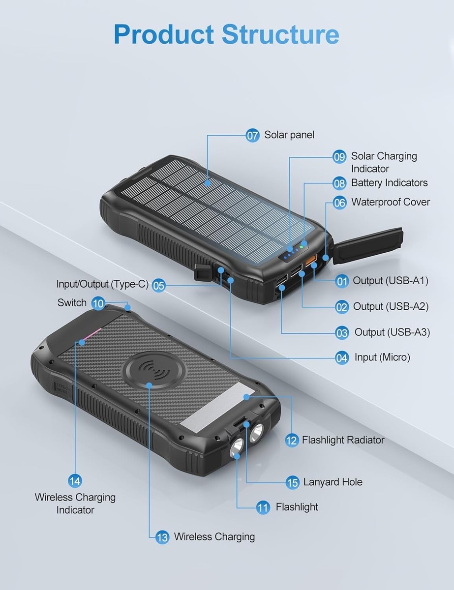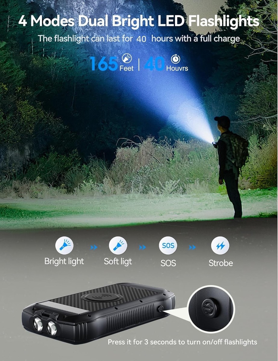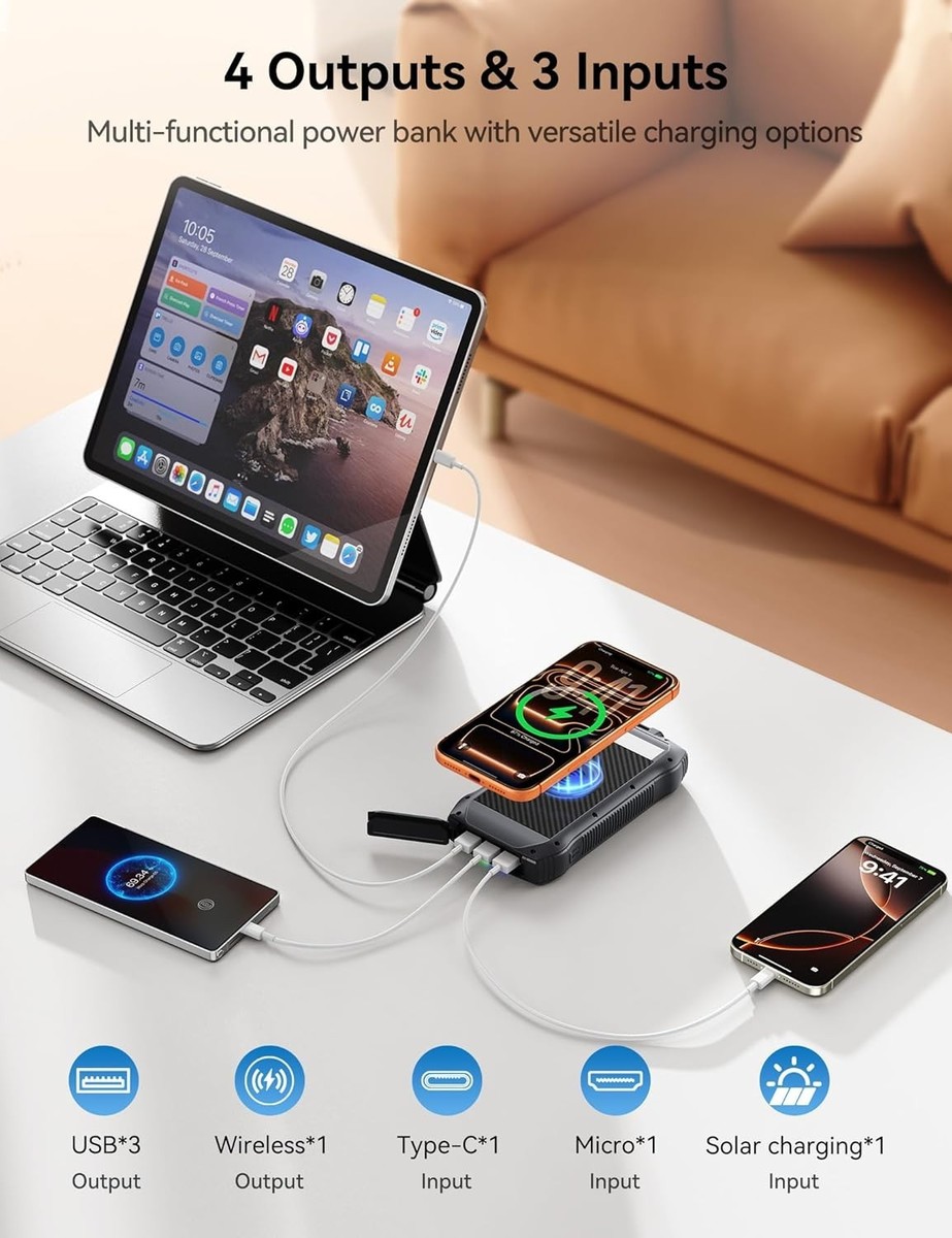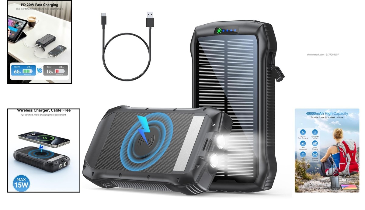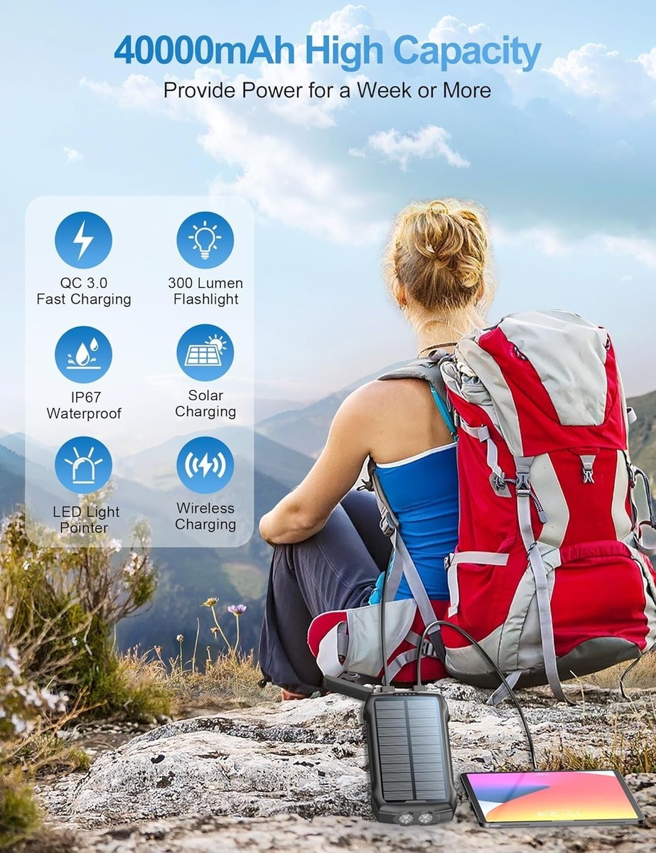 40000mAh Solar Power Bank - Wireless Charger with 20W Fast Charging for Outdoors
