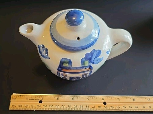 Country Scene Blue by M A HADLEY HOUSE Mini Teapot & Lid 5 3/8in 2 Cups