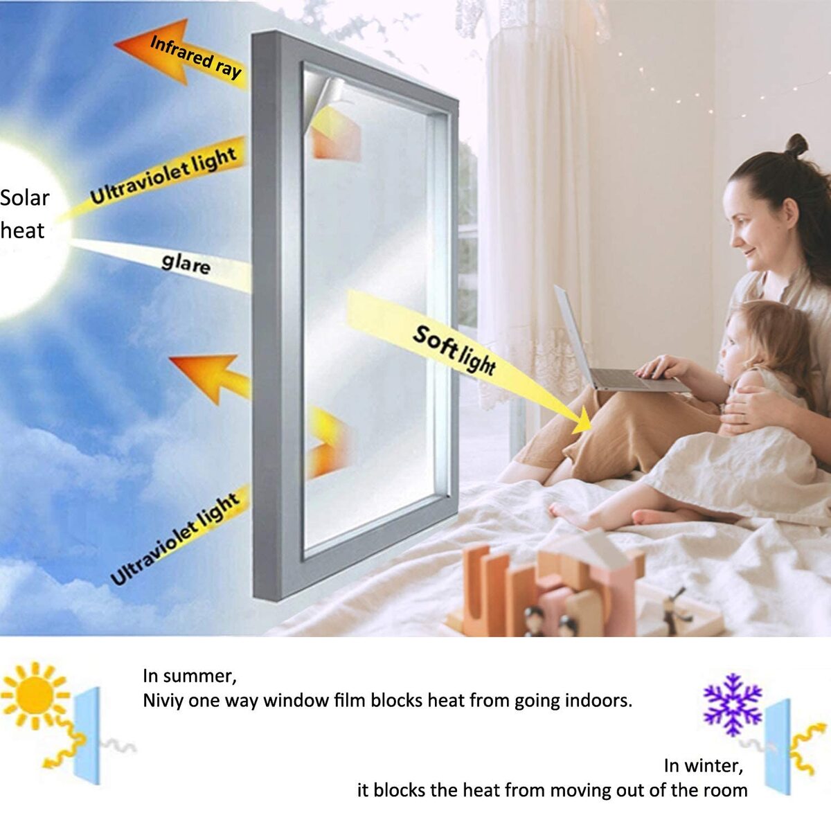 Niviy One Way Window Film Daytime Privacy Reflective Mirror Tint UV Heat Control