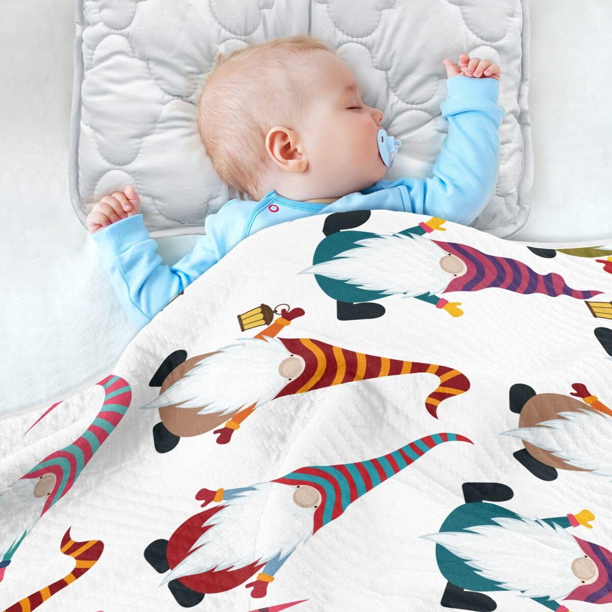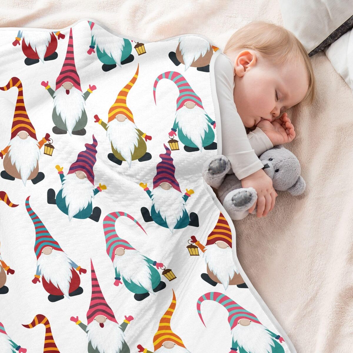 KICPOAY Baby Muslin Swaddle Blanket: Cute Cartoon Gnomes, 30"x40" Cotton/Polyest