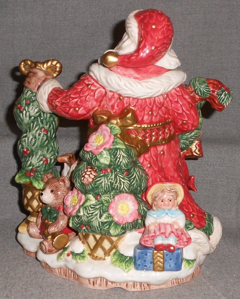 This is the 1996 Fitz and Floyd 26 oz Ceramic Santa Claus Teapot - great design and detail. It measures approx 9" tall to top of lid and approx 6 3/4" x 4 3/4" at base and it is in good pre-owned condition with no chips or cracks.