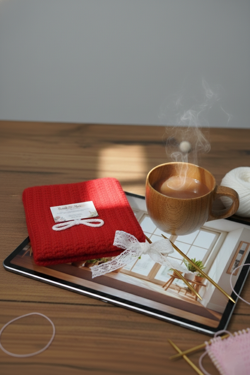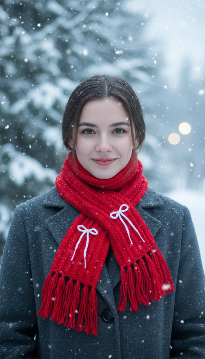 The elegant ribbed texture, bright red color, and cute bow details make it a unique accessory for anime lovers and a thoughtful handmade gift. Each piece is crafted with love, giving you a special, one-of-a-kind winter wrap.