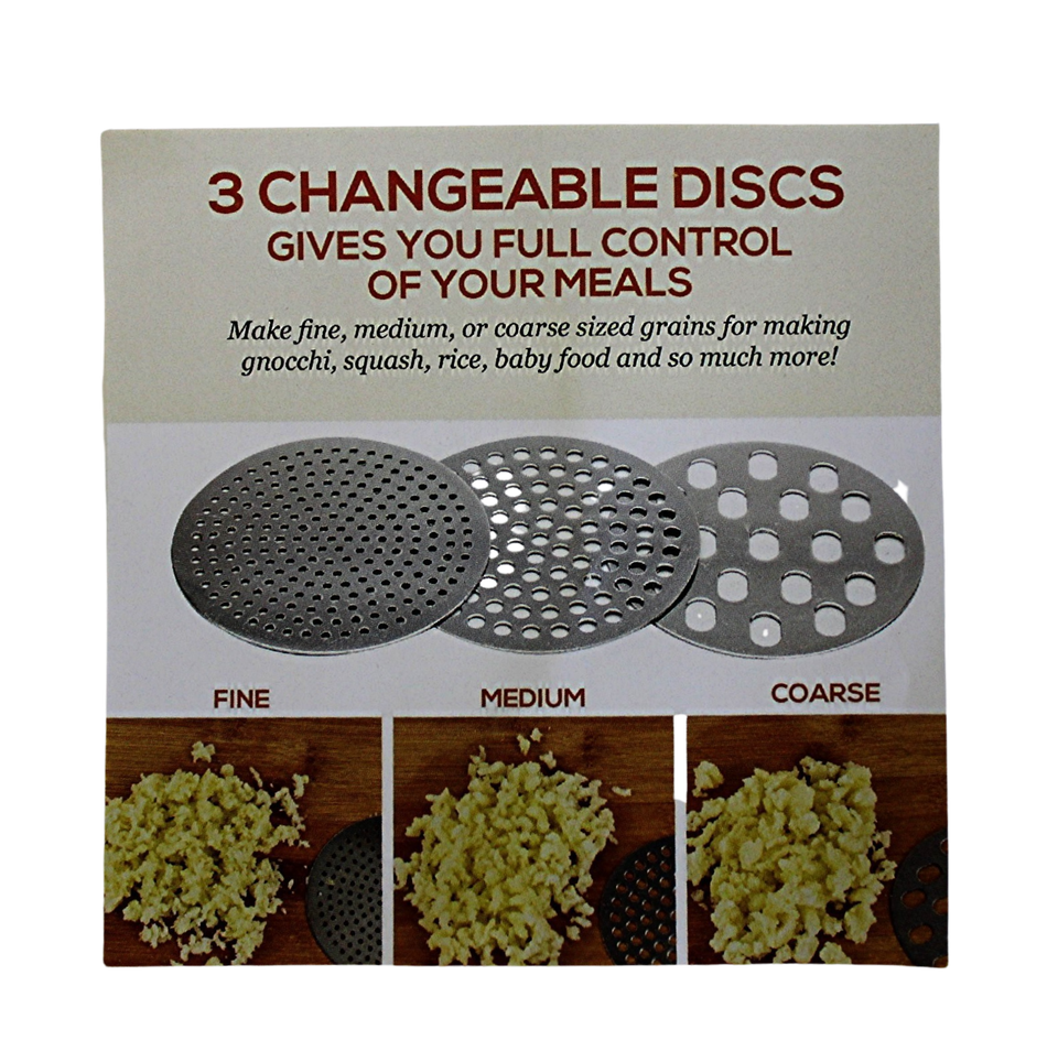 Includes 3 Interchangeable Discs for Fine, Medium, and Coarse