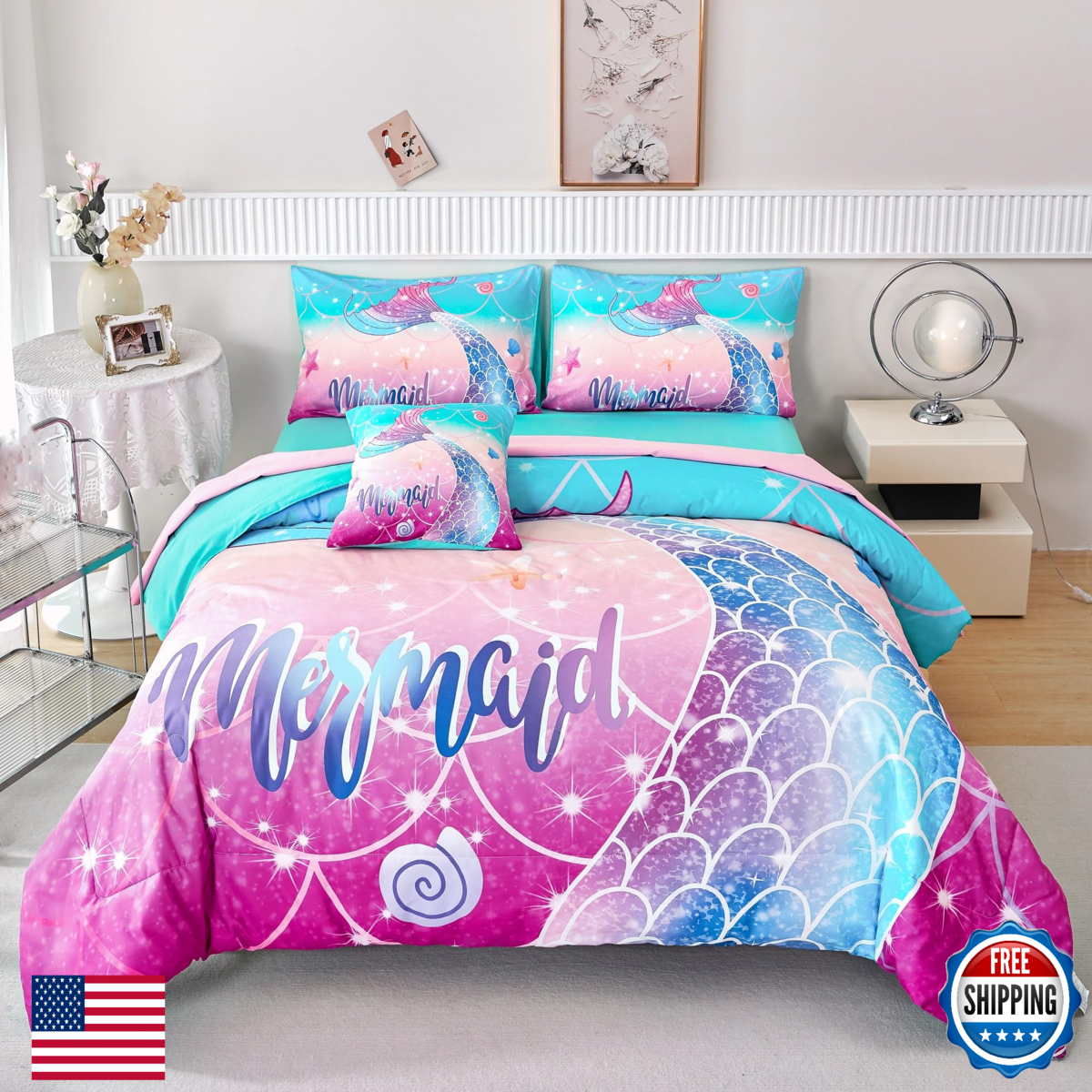 RYNGHIPY 6Pc Mermaid Comforter Set Twin, and similar items