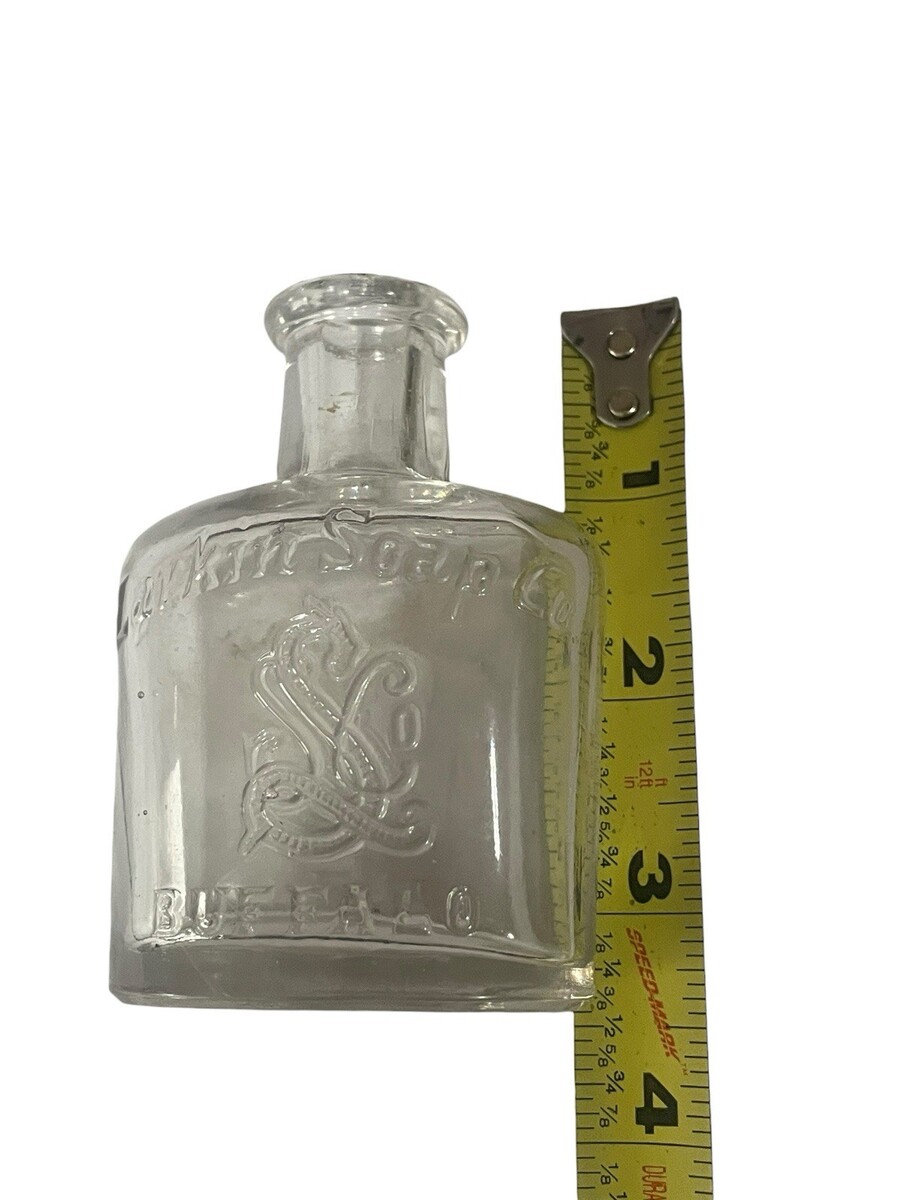 The 1880's Larkin Soap Mfg Co Buffalo NY embossed clear bottle is a unique piece in the world of antiques. With a volume of 3 oz and featuring an applied top and blown rim, this bottle falls under the category of Medicines Cures. Made in the United States during the late 19th century, this collectible item showcases the craftsmanship and design of the era. Perfect for collectors of vintage bottles or those interested in the history of medicinal products, this Larkin Soap bottle offers a glimpse into the past and is a valuable addition to any collection.