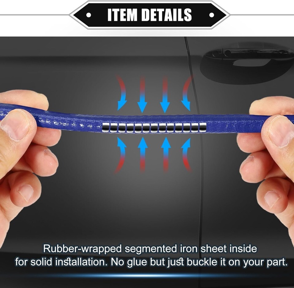 Car door edge guard strip protects from edges and scratching, makes a sporty decoration to your car, flexible to bend and cut according to individual needs. U-shape no adhesive is needed but just buckle it on your part.